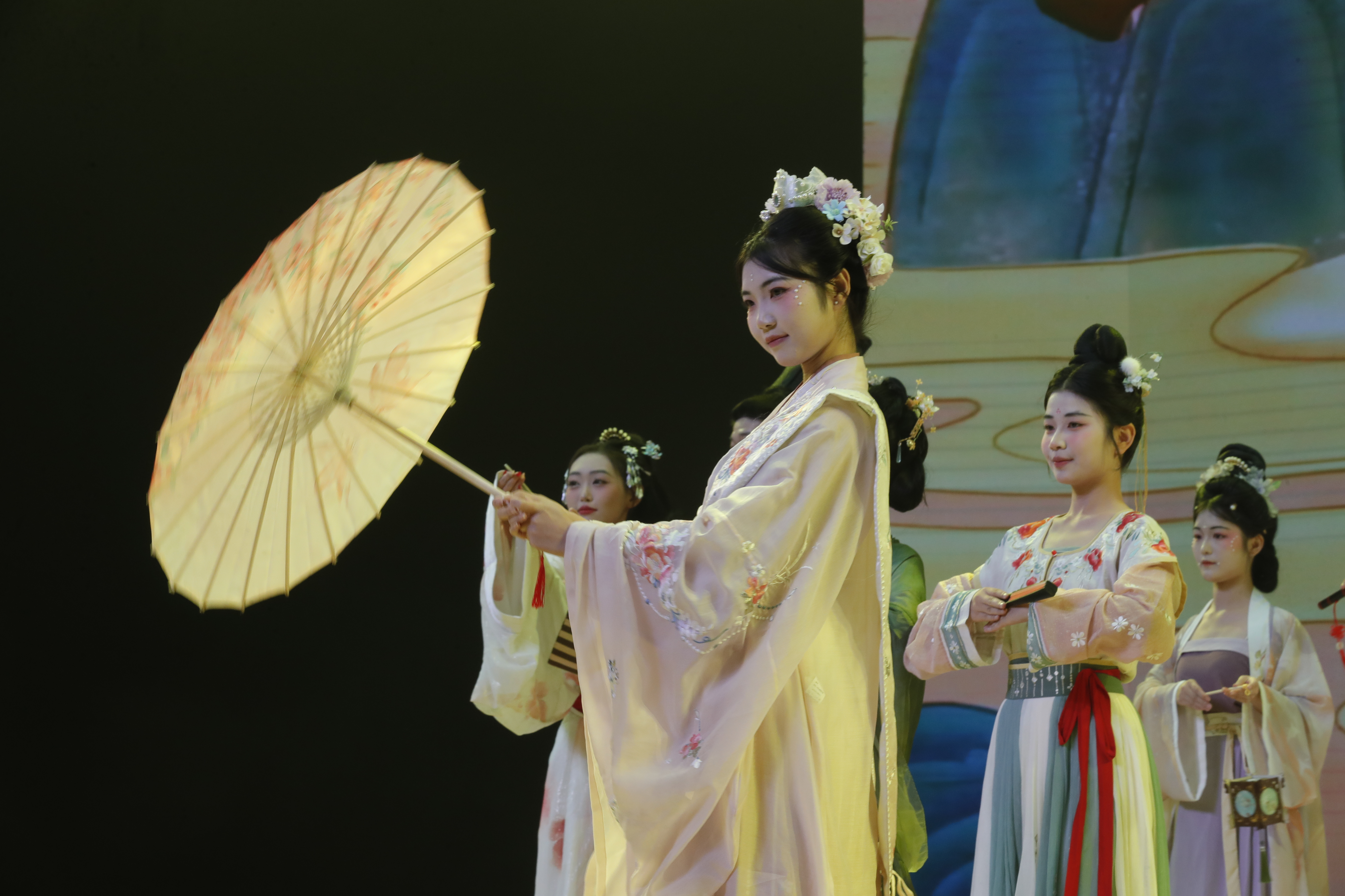 第二篇章“正青春·挺膺担当”将现场气氛推向高潮。民乐合奏《象王行》以磅礴之音传递家国情怀与责任担当,歌曲《荣光》致敬着每一位奋进的劳动者,舞蹈《淡妆浓抹总相宜》与华服秀《锦绣华裳》则诠释了艺术与使命的交融之美。台上台下激荡的,是师生间以心育心、以行导行的深厚情谊,更是代代相传的石油精神血脉在新时代的生动回响。