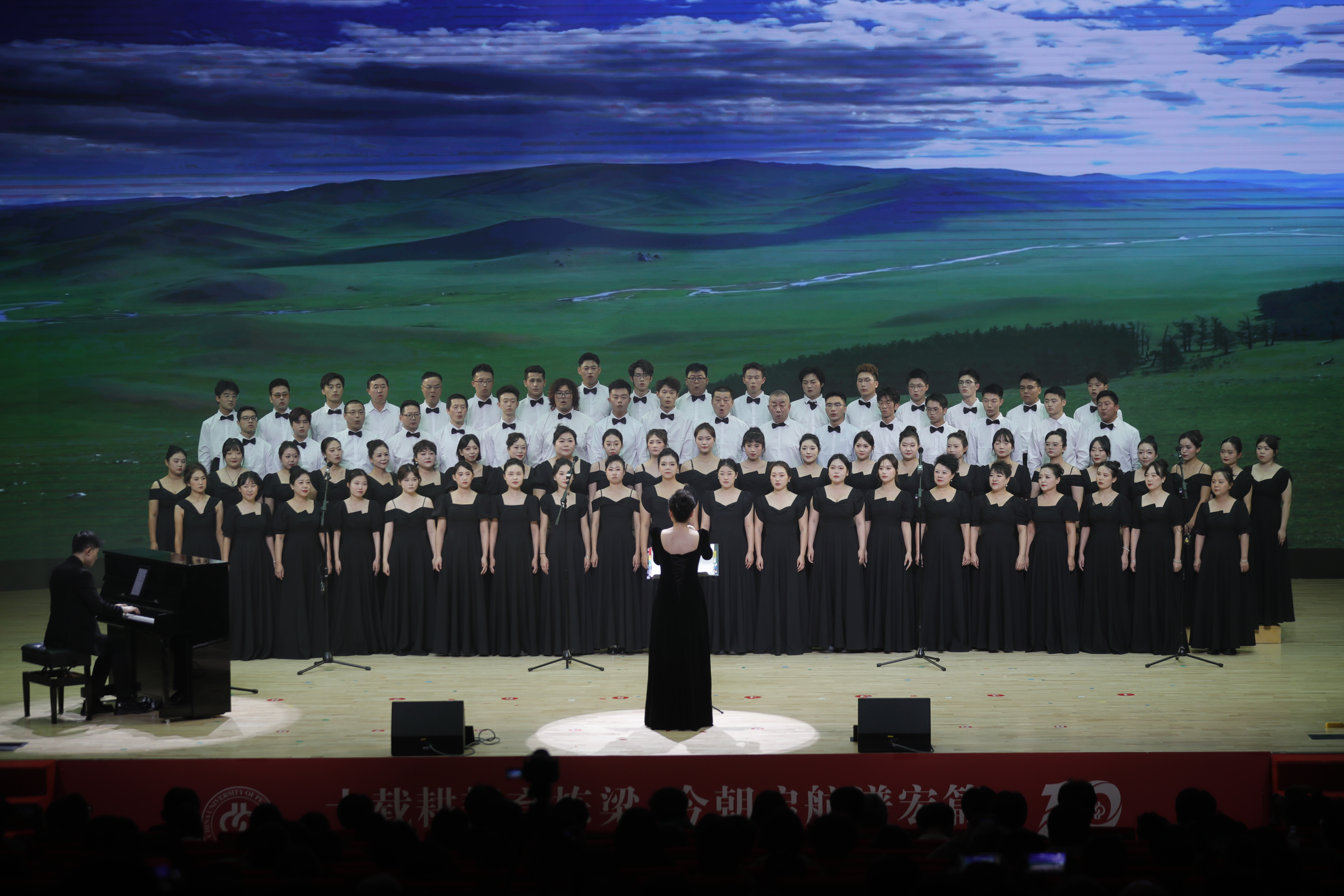 在第三篇章“向未来·赓续荣光”中,歌伴舞《一起向未来》《在希望的田野上》以动人歌声与优美舞姿,表达对美好未来的憧憬与祝福;诗歌朗诵《星火十载耀边疆》深情诉说育人初心,引发全场共鸣。晚会在合唱《欢乐的那达慕》《莫尼山》的恢弘旋律中圆满落幕。