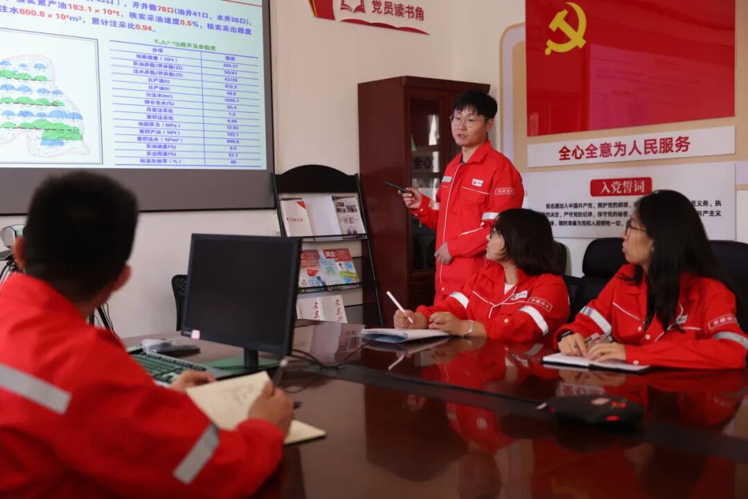 目前,郭祥祥管理的老区油藏已进入双特高阶段,近年来为减缓油藏递减,改善油藏开发效果,郭祥祥和同事们积极开展精细剩余油研究,在地质潜力再认识的基础上,重点开展井网调整、精细注水与调剖调驱工作。2023年优化调剖体系设计,针对管辖油藏实施调剖调驱,调剖井组递减由29.8%下降至5.0%,实现当年增油2007吨,油藏水平自然递减呈下降趋势,2024年紧密跟踪井网调整方案实施,油藏生产趋于稳定。