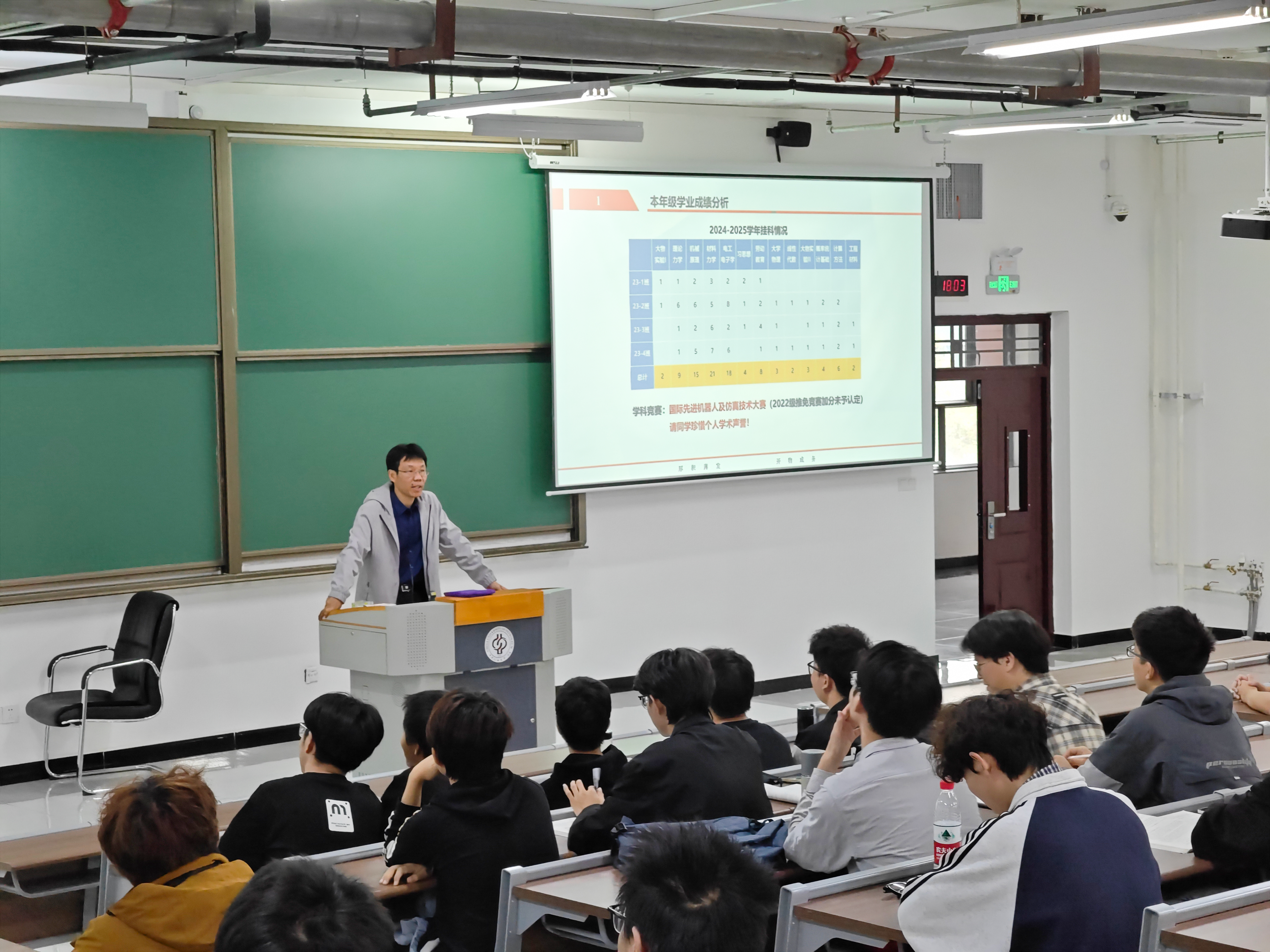 为帮助学生精准掌握学业现状、明确升学规划,9月16日,机械制造及其自动化专业负责人宋强老师组织召开专业大会。会议聚焦“学业分析-升学解读-规划建议”三大核心,通过数据梳理、路径拆解与问题解答,为学生搭建起清晰的学业提升与升学准备框架。