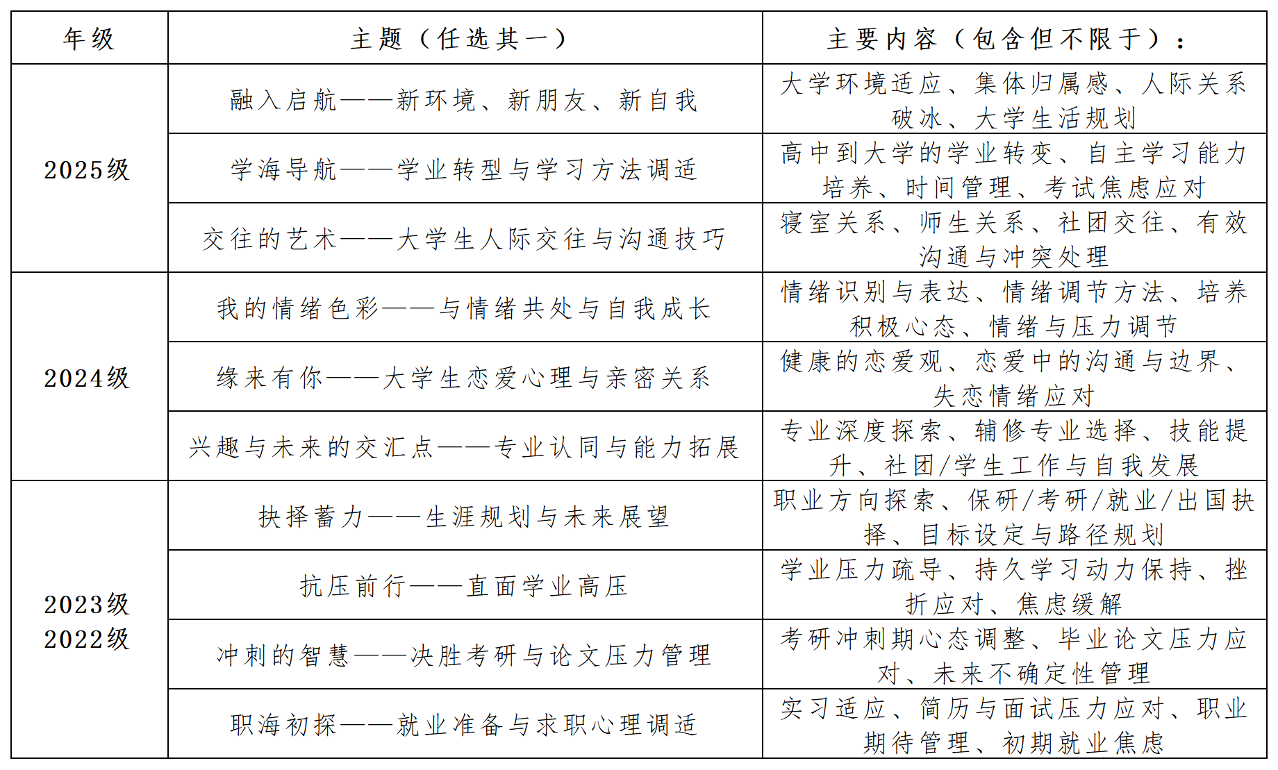 各班级需结合所在年级的阶段性发展任务与心理需求,从以下主题中选择其一开展活动: