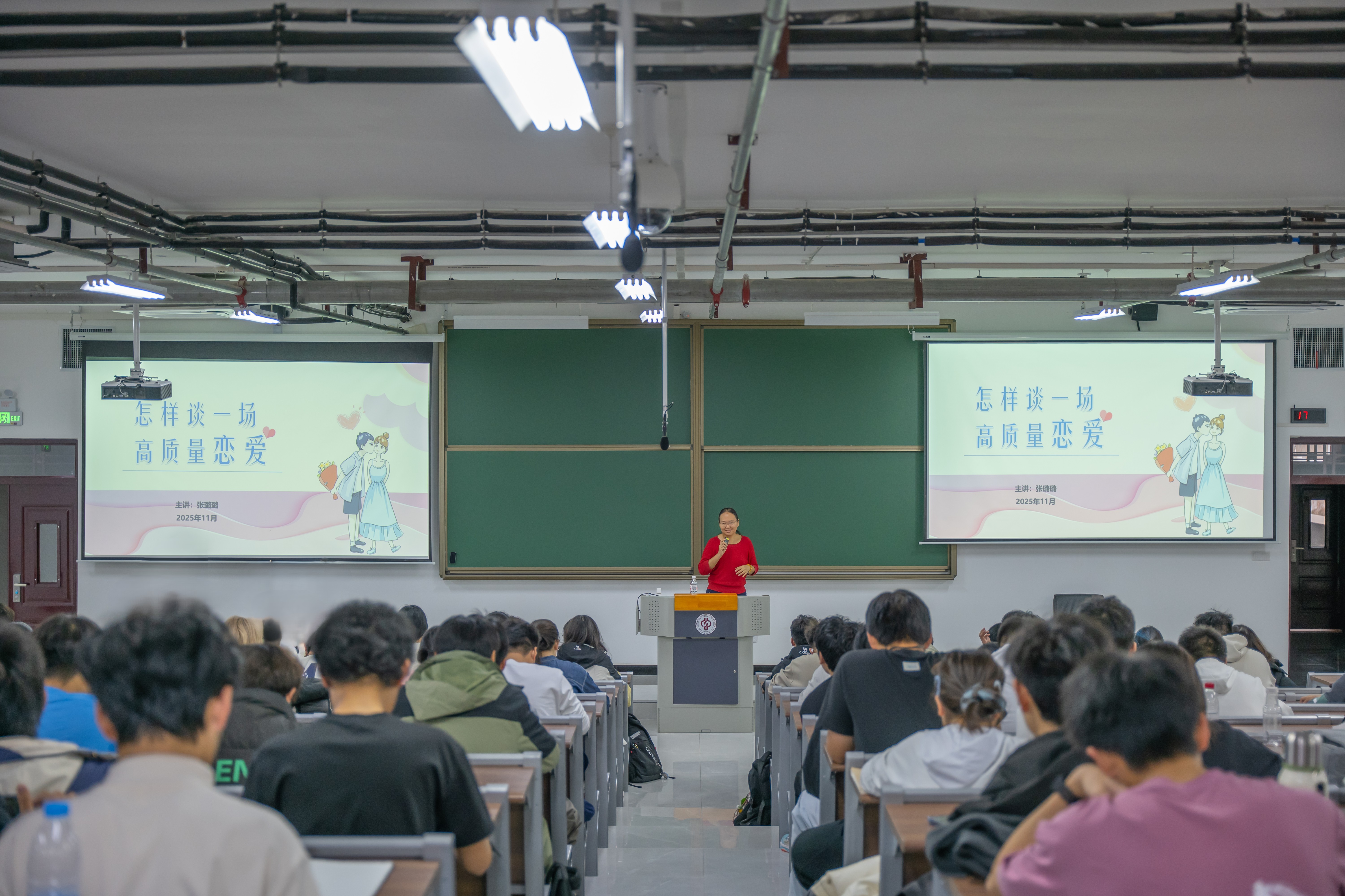 讲座围绕当代大学生恋爱现状、常见心理现象及健康关系构建等核心内容展开。张璐璐结合丰富的心理咨询实践经验,从“当代大学生恋爱新趋势”入手,分析了当前青年群体在亲密关系中的价值取向与行为特征,指出情绪价值、精神默契与个人边界感在恋爱中的重要性,并针对数字化恋爱、AI伴侣等新兴现象进行了深入解读。