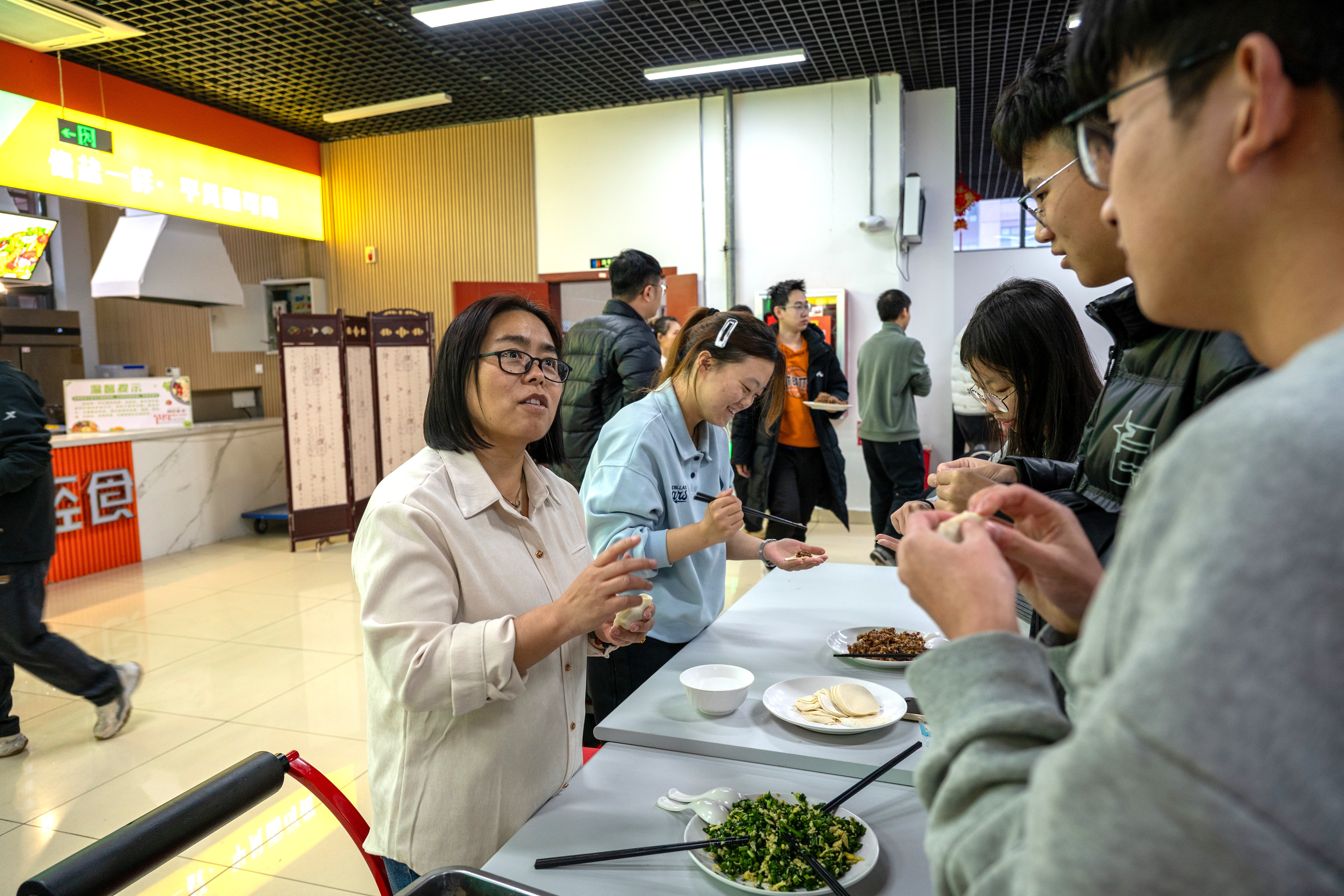 师生们齐聚在第三学生餐厅二楼,在欢声笑语中共同加入一场温暖的包饺子活动。大家纷纷展示着自己的“作品”,脸上洋溢着欢快的笑容。热气腾腾的饺子陆续端上餐桌,共同品尝亲手包的饺子,分享着在校区学习与生活中的经历与心得。尽管大家来自天南地北,但在这热腾腾的氛围里,每个人都真切地感受到了家一般的温暖。
