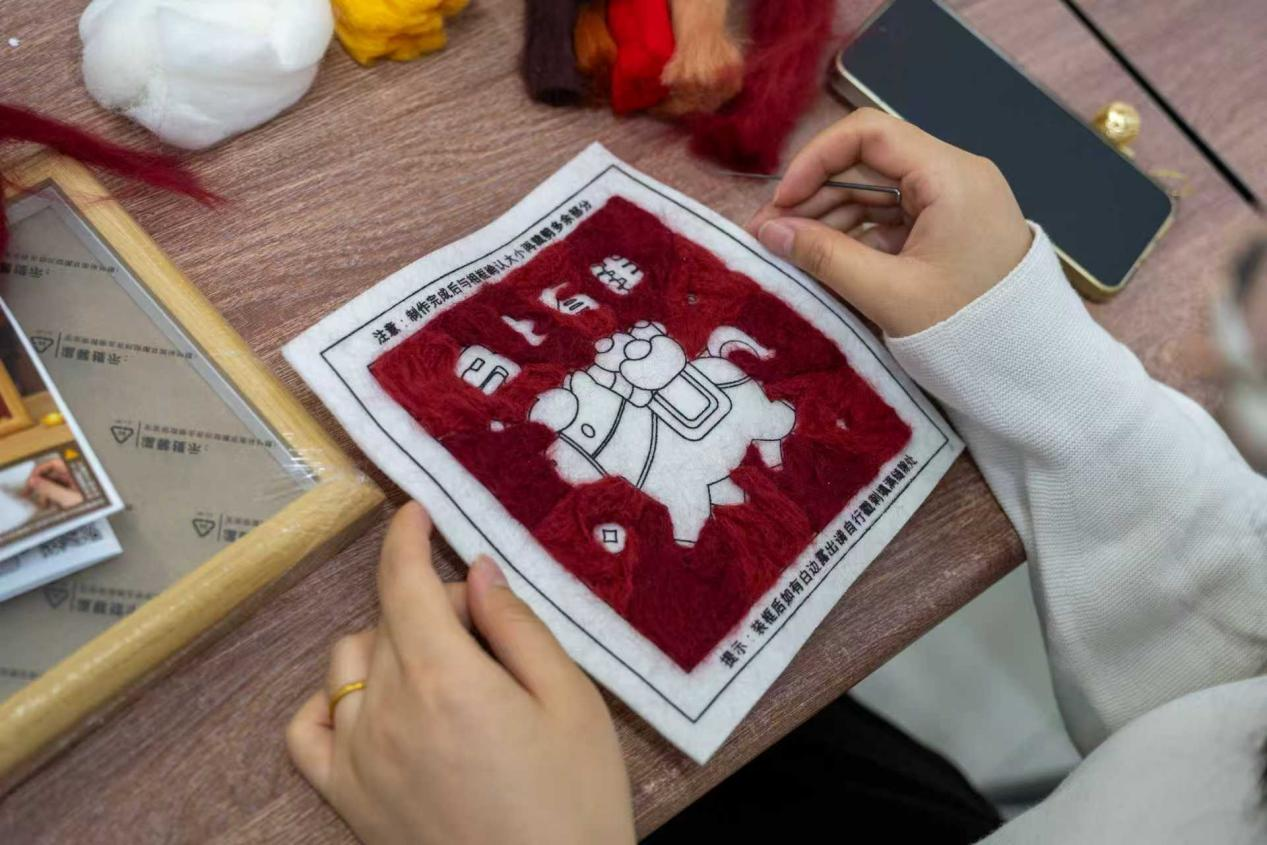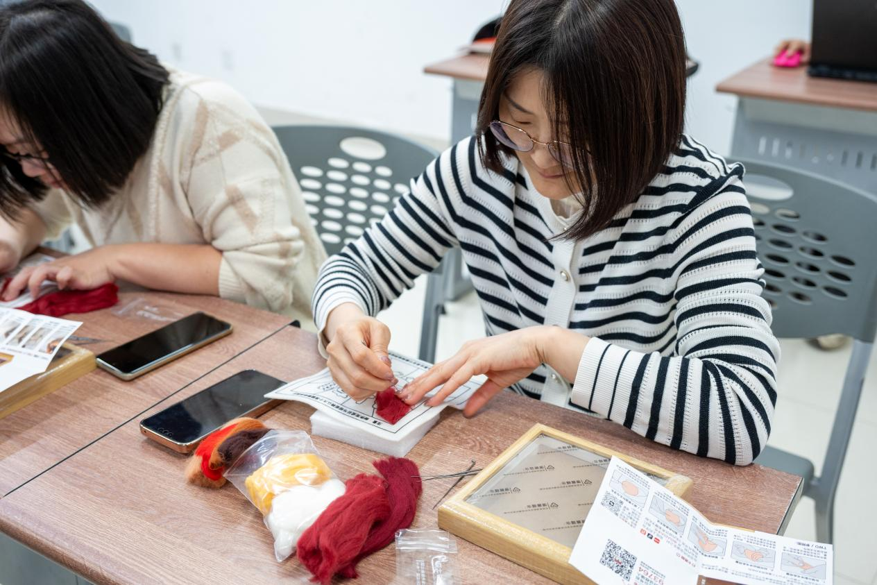 羊毛毡制作过程虽简单却需极大耐心,既考验手眼协调能力,也体现专注细致的工匠精神。参与者纷纷表示,在手作过程中既体验到创造的乐趣,也感受到节日的温暖与关怀。一件件亲手完成的作品,承载着对美好生活的热爱与对未来的期许。