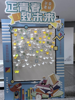 活动现场,精心准备的留言板吸引了众多考研学子的目光。这块留言板,不仅仅是一块普通的板子,它更像是一座情感的桥梁,连接着考研学子们彼此的心声,也连接着他们与我们的关怀与支持。同学们纷纷拿起笔,在留言板上写下了自己的考研心愿、梦想学府,或是对自己鼓励的话语。