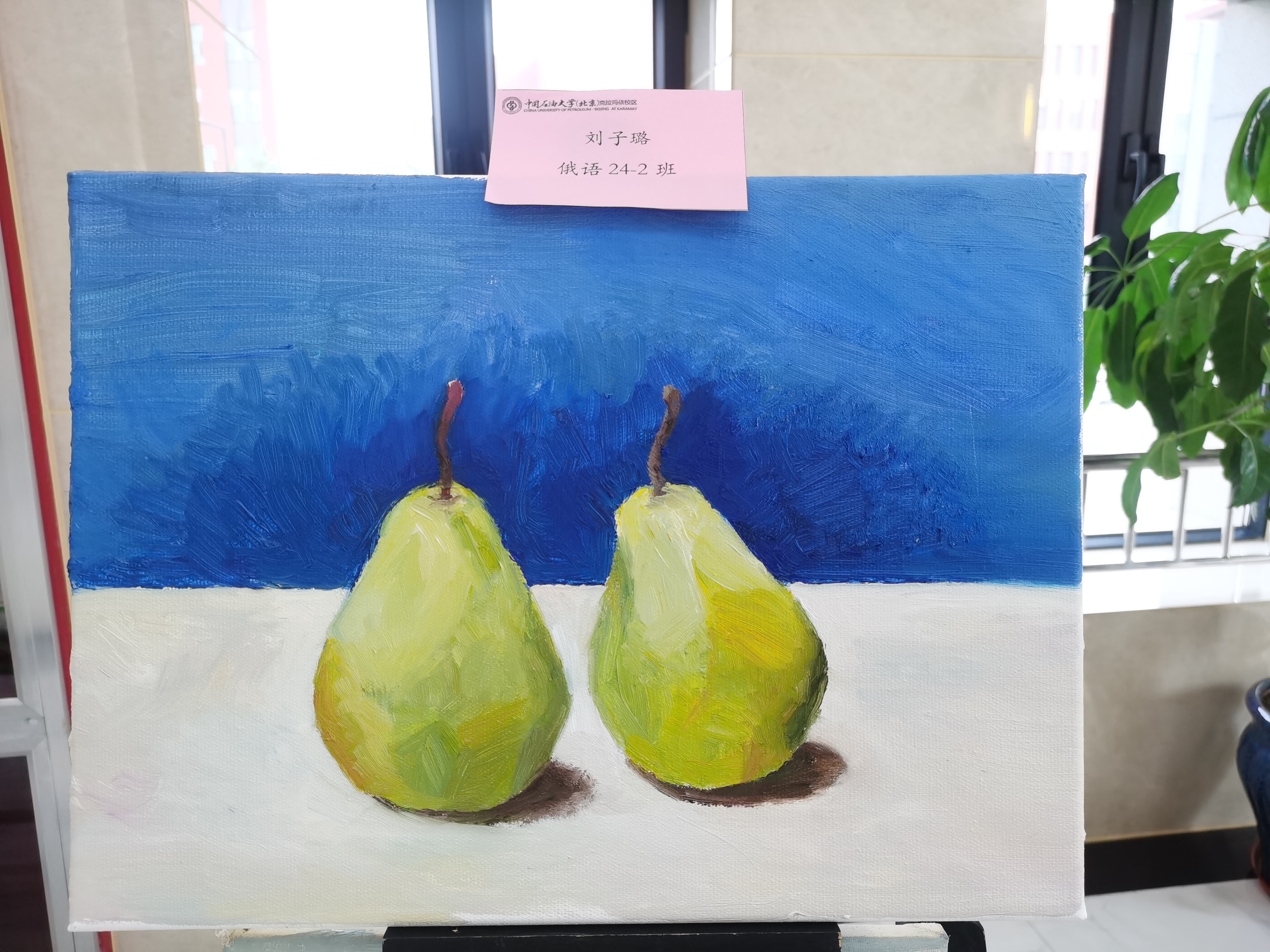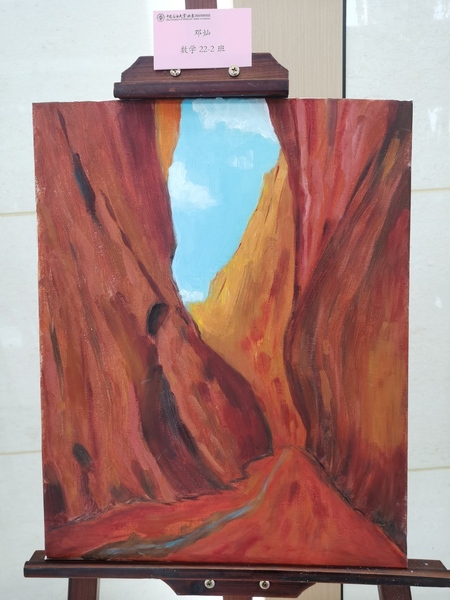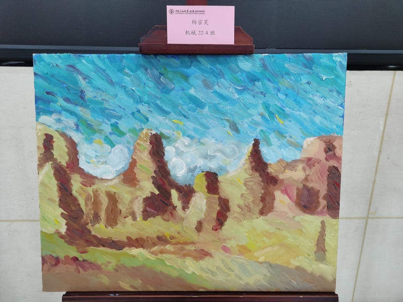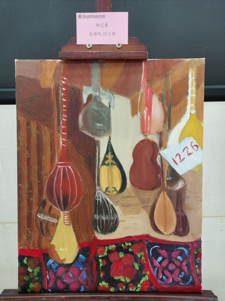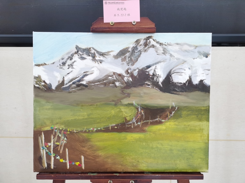 与此同时,《油画入门》课程的作品展也在现场同步举行。同学们以独特的艺术视角和创作才华,将校园生活、边疆风光融入画作,一幅幅色彩斑斓的油画作品吸引了众多观众驻足欣赏。展览不仅是对学生专业技能的一次检验,更是对他们创新思维和审美能力的生动展示。