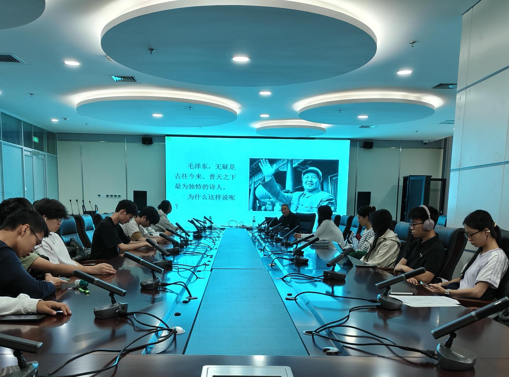 唐跃培老师的解读不仅为大家理解毛泽东诗词提供了全新视角,也激发了同学们对革命文艺经典生成脉络探究的热情。讲座在全场师生的热烈掌声中落下帷幕。