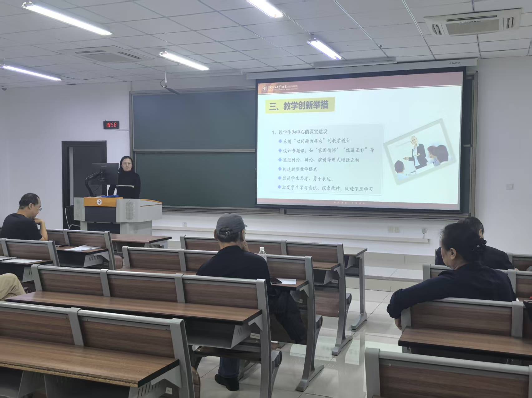 本次预赛分线上函评与现场评审两个阶段递进推进。10 月 23 日至 11 月 5 日,学院完成 9 位参赛教师函评材料的征集工作。学院教学指导专家组通过线上平台,对参赛材料进行逐份细致审阅,从教学设计逻辑性、创新点落地性等维度进行全面考评,为后续现场评审筑牢基础。