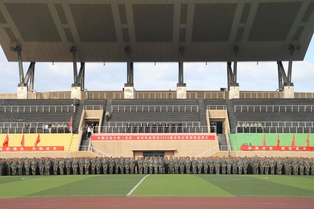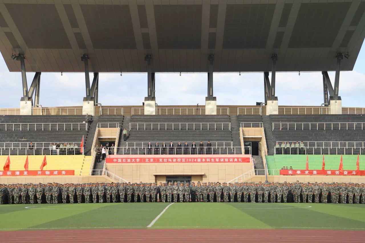 9月14日上午,中国石油大学(北京)克拉玛依校区2024级本科生军训结训典礼在校区红旗操场举行。校区校长李军,党委副书记徐长亮,副校长邢晓凯,学生工作与安全保卫部负责人,各学院党委副书记出席典礼。典礼由学生工作与安全保卫部主任林强主持。