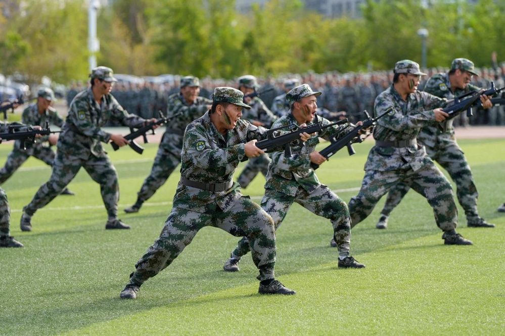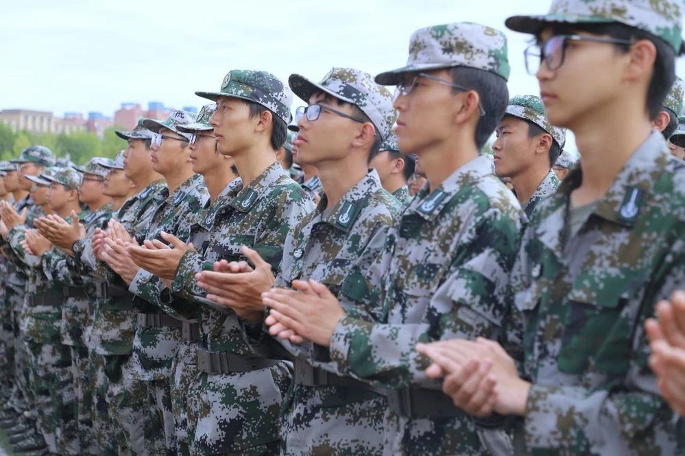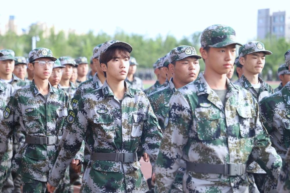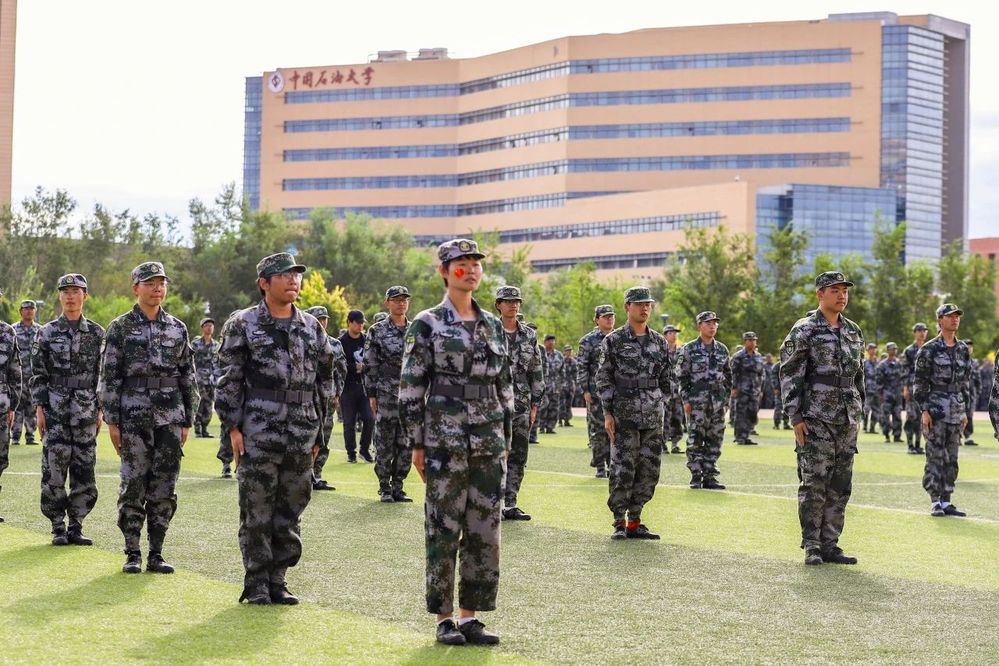 李军对军训团进行检阅。整个阅兵过程中,同学们精神饱满、士气高昂,展现出了中石大学子青春昂扬、积极向上的精神风貌。