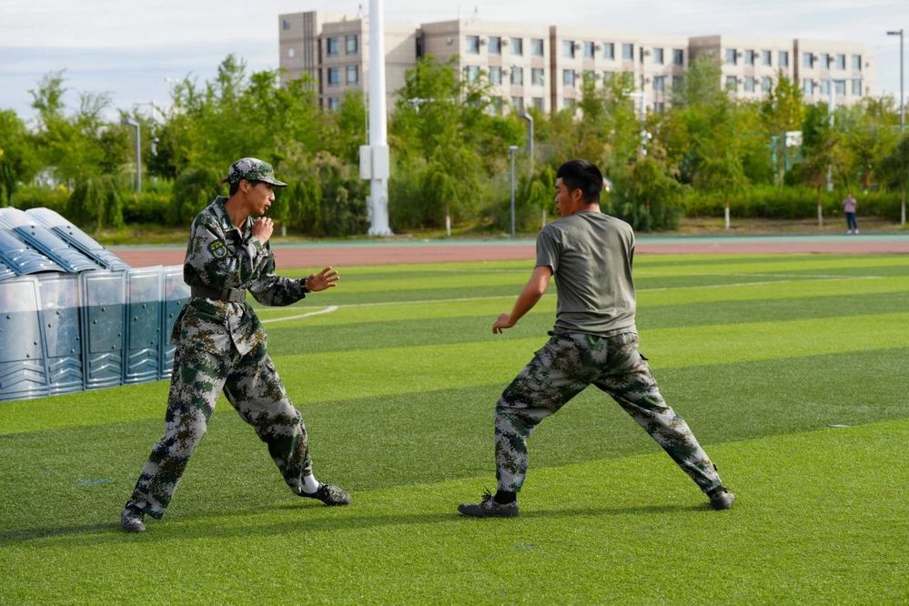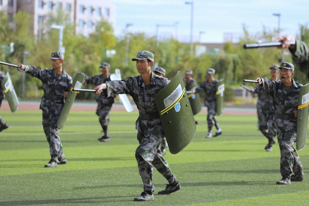 2024级本科生军训历时14天。军训期间,校区邀请克拉玛依市护理学会和南丁格尔志愿者服务56名医护人员,为2024级新生开展心肺复苏、海姆利克等急救知识培训,着力提升新生自救互救意识和能力;邀请消防救援队组织新生开展学生公寓消防疏散演练,促进新生掌握防范火灾的逃生的方法与路线,极大丰富训练形式和内容,进一步提升校区军训工作的质量和实效。