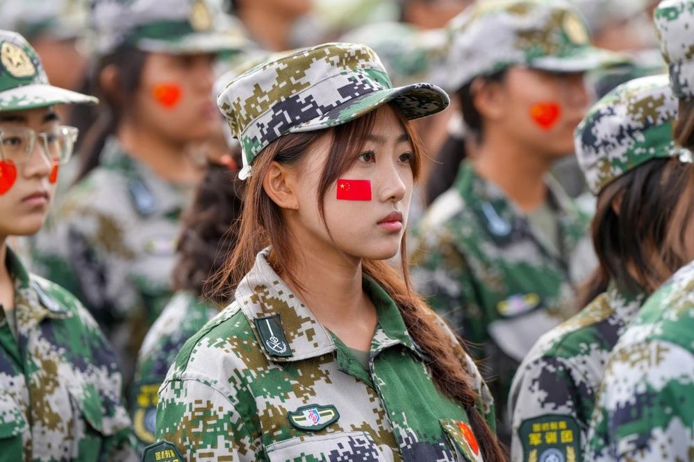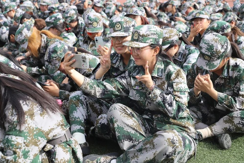 800人拼字组字方阵,灵活跑动出“校徽”“75”“2024”等字样向中华人民共和国成立75周年献礼,表达出全体新生爱党、爱国、爱校的坚定决心。