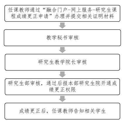 注:无特殊原因系统提交后的成绩不得更改。因试卷评阅、计分或成绩录入等过程中的疏忽,造成已录入研究生教育管理系统的成绩有误的,须按上述流程申请成绩更正。