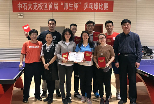 最终,工学院的杨昊岳同学和石油学院的王红梅同学分别摘得学生组比赛的冠军;文理学院代表队和石油学院代表队分别获得教师组比赛的团体冠亚军。通过比赛让同学们看到了不同以往在讲台上的谆谆传道者,也为有乒乓球特长的同学们提供了展示的平台。