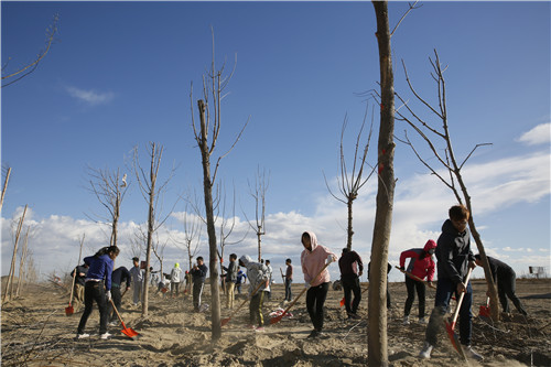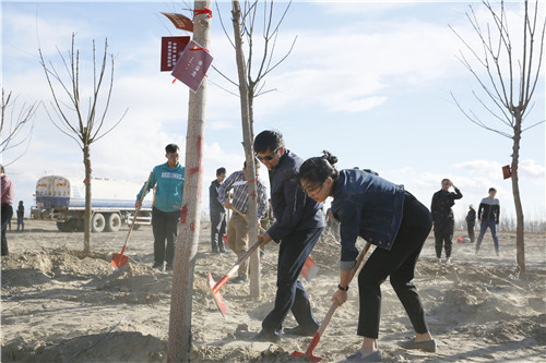 今年4月14日同时也是校区领导班子进入校区办公一周年的日子。各族师生以共植一棵亲情树的形式,为校园建设贡献自己的力量,种下的不仅仅是民族团结,也是每一位师生“不忘初心,添绿戈壁”的决心与希望。