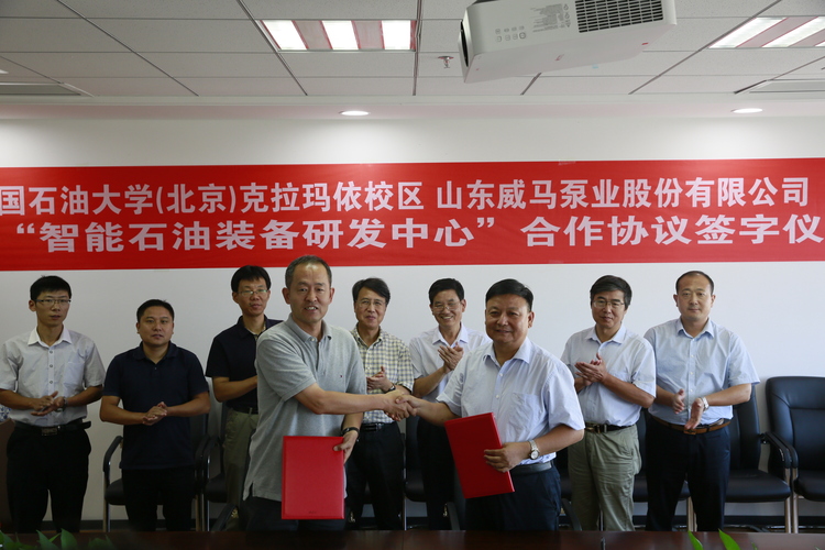 8月31日,中国石油大学(北京)克拉玛依校区与山东威马泵业股份有限公司共建“智能石油装备研发中心”合作协议签字仪式在中国石油大学(北京)克拉玛依校区举行。仪式由校区管委会副主任张宏主持。校区工学院院长郭绪强和山东威马泵业股份有限公司董事长马宝忠代表双方在协议书上签字。