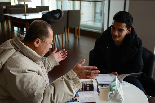 学生依次参观了总馆大厅,二层外语学习区,三层外文杂志区等五个区域。正值周末,馆内聚集了大量本市读者,他们对国际学生的到来表现出极大的热情与关注。一位读者与校区留学生聊天,交流各自国家的文化与生活,并临时教留学生学习汉语的“秘笈”。