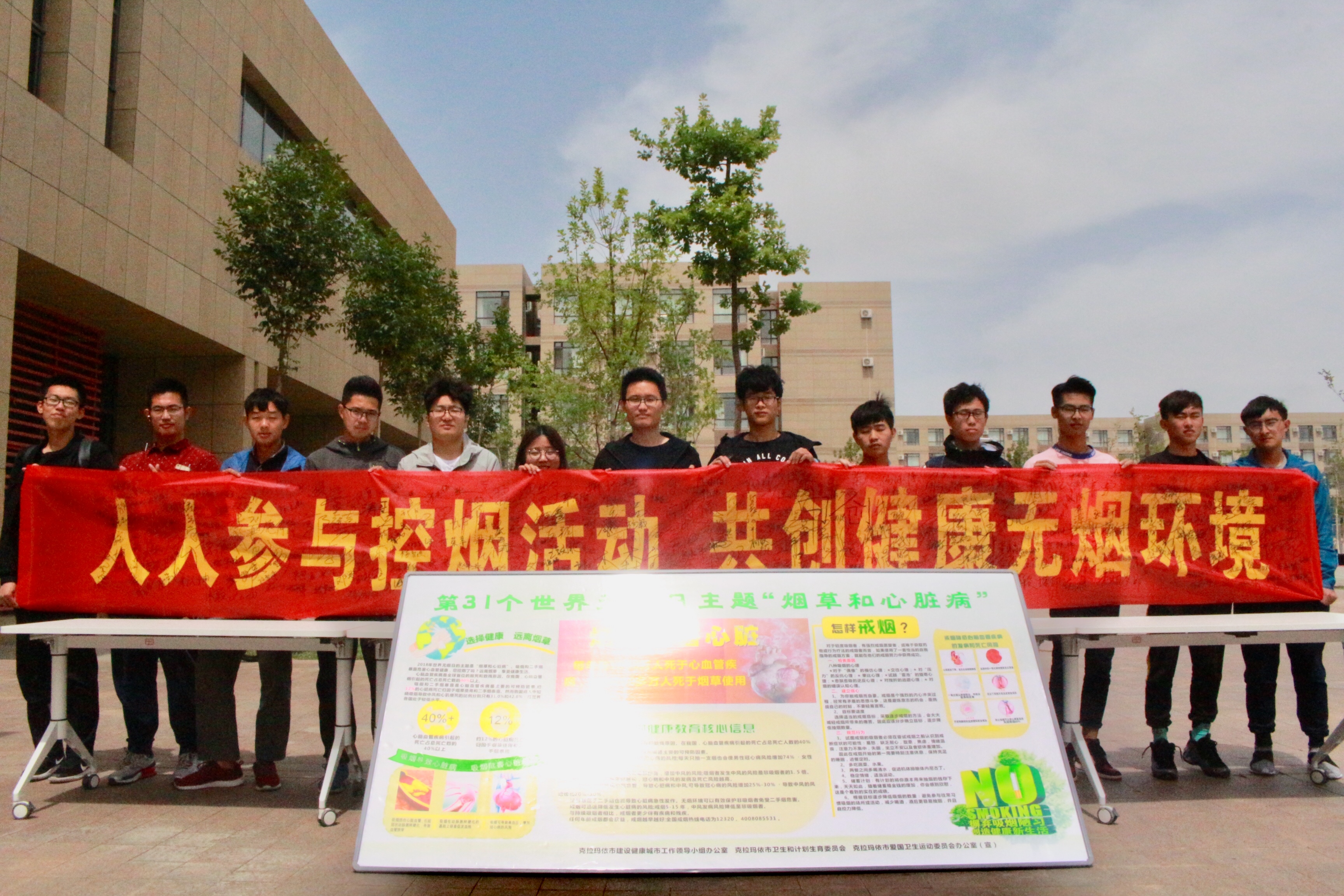 5月31日是第31个“世界无烟日”,今年的主题是“烟草和心脏病”。为配合此次世界无烟日主题宣传活动的开展,中国石油大学(北京)克拉玛依校区开展了形式多样的宣传活动。此次活动由财务与校园管理部牵头,学生工作与安全保卫部和党群工作部配合完成。