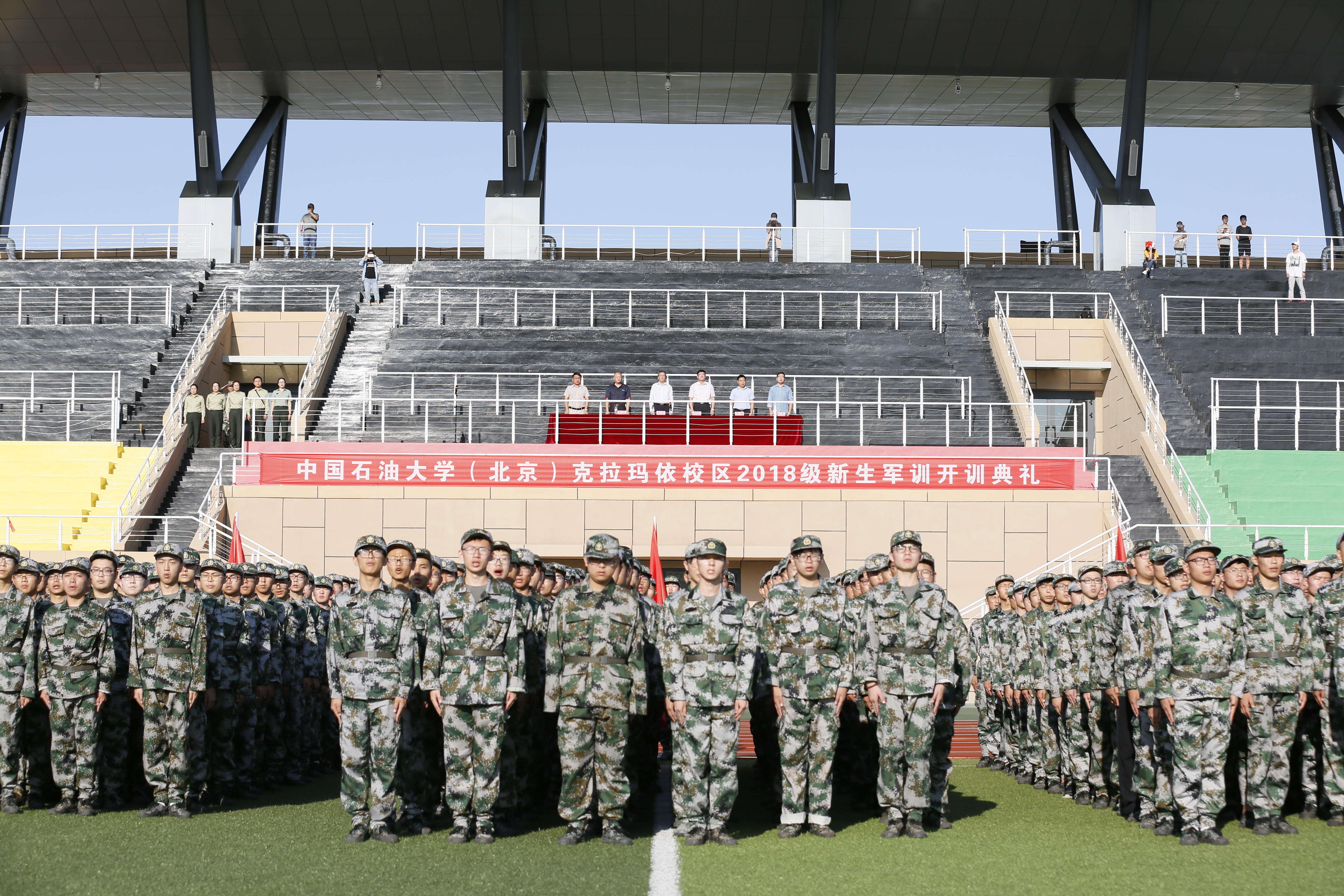 8月29日,中国石油大学(北京)克拉玛依校区2018级学生军训开训典礼在大学城体育场举行。副校长、校区党工委书记陈大恩,党工委常务副书记陈桂刚,各学院专职副书记,承训教官,带队教师和957名参训学生参加了此次典礼。典礼由学生工作与安全保卫部主任姜立国主持。