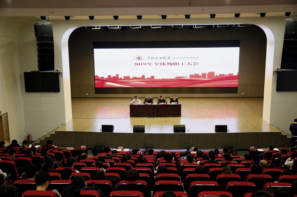 3月8日下午,中国石油大学(北京)克拉玛依校区召开2019年全体教职工大会。全体教职工参加了此次会议,党工委书记、管委会主任陈大恩部署2019年校区重点工作,管委会常务副主任孙旭东部署“两会”期间校区安全稳定工作,管委会副主任肖磊主持会议。