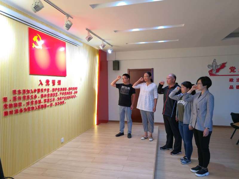 在活动室,林莉同志带领大家一起学习了习近平总书记在纪念五四运动100周年大会上的讲话和《中国共产党党员教育管理工作条例》等文件,并就支部工作规范和如何加强党支部对青年师生的政治引领进行研讨。随后,支部在党员仪式厅进行了重温入党誓词活动。