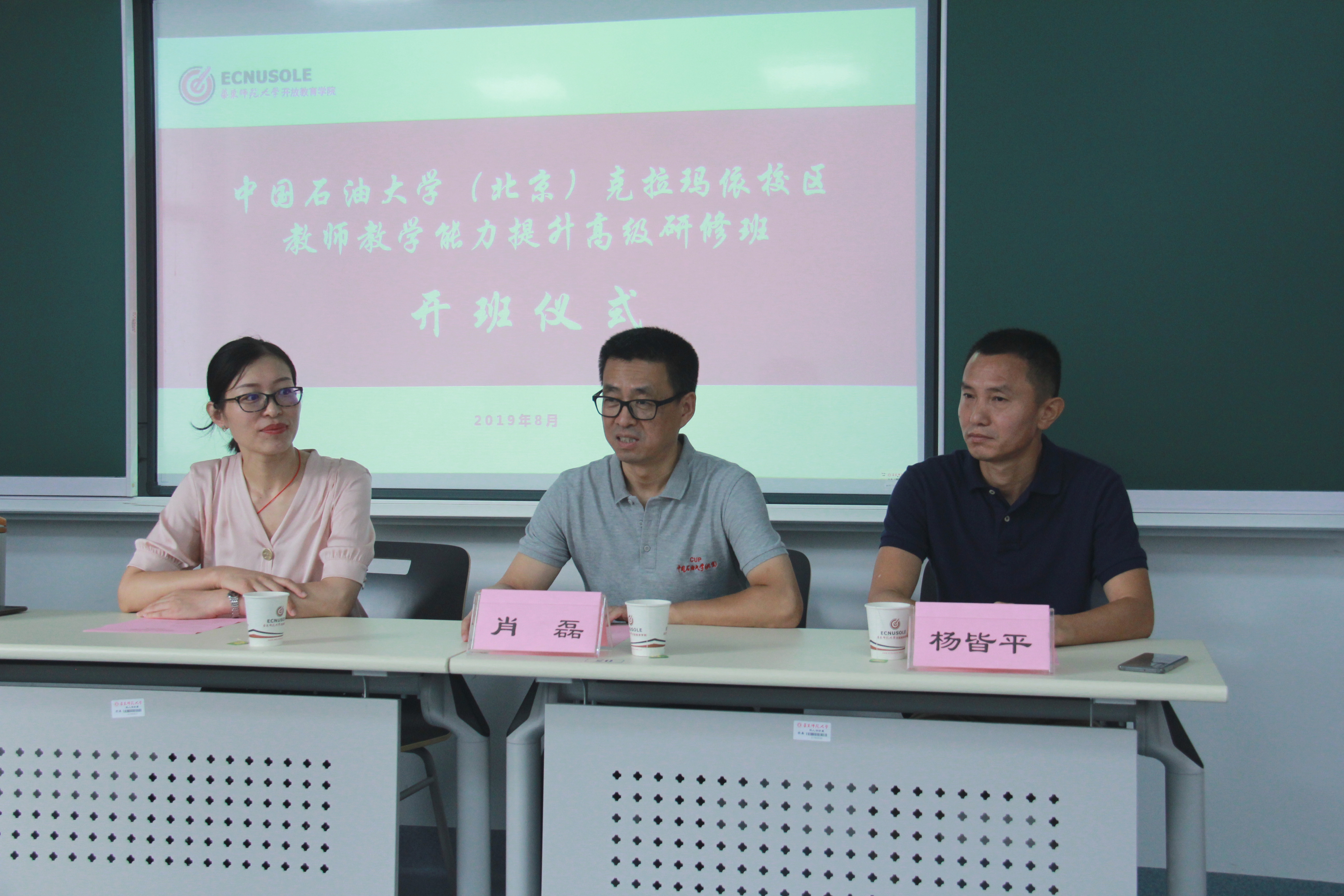8月18日上午,首届教师教学能力提升高级研修班开班仪式在华东师范大学文史楼举行,校区管委会副主任肖磊、校区教务与国际交流部主任杨皆平、华东师范大学开放教育学院社会培训部主任宋雪莲出席。肖磊在致辞中指出,本次研修班的举办既是贯彻落实习近平总书记关于坚持把教师队伍建设作为基础工作的要求,也是顺应校区建设高素质专业化创新型教师队伍的需要。他要求,受训教师应充分把握培训机会,通过培训,了解国家教育发展形势,学习课堂教学具体技能,不断提高教学水平和教学能力。