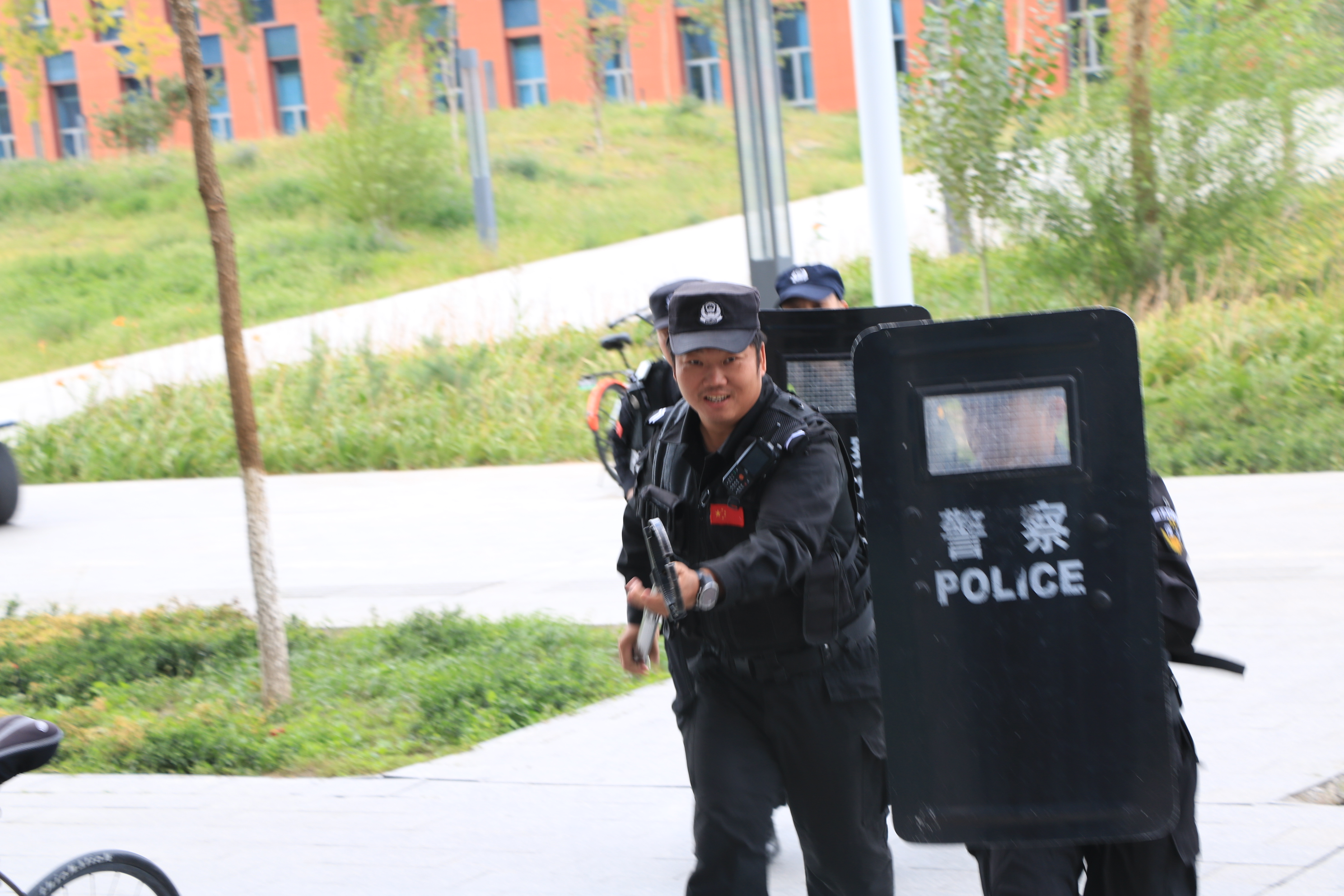 演练以危险化学品库盗抢事故为案发背景。当天在C8教学楼危险化学品库现场模拟突发盗抢事故,安保人员按照应急处置流程有序上报、警戒、疏散人群,并配合公安人员实施现场抓捕;接着信息与科技管理部人员检查技防设施,清点危化品库存,恢复防入侵系统;最后确认险情排除,应急状态解除。整个演练过程紧张有序,各个环节衔接紧密,演练效果较为理想。