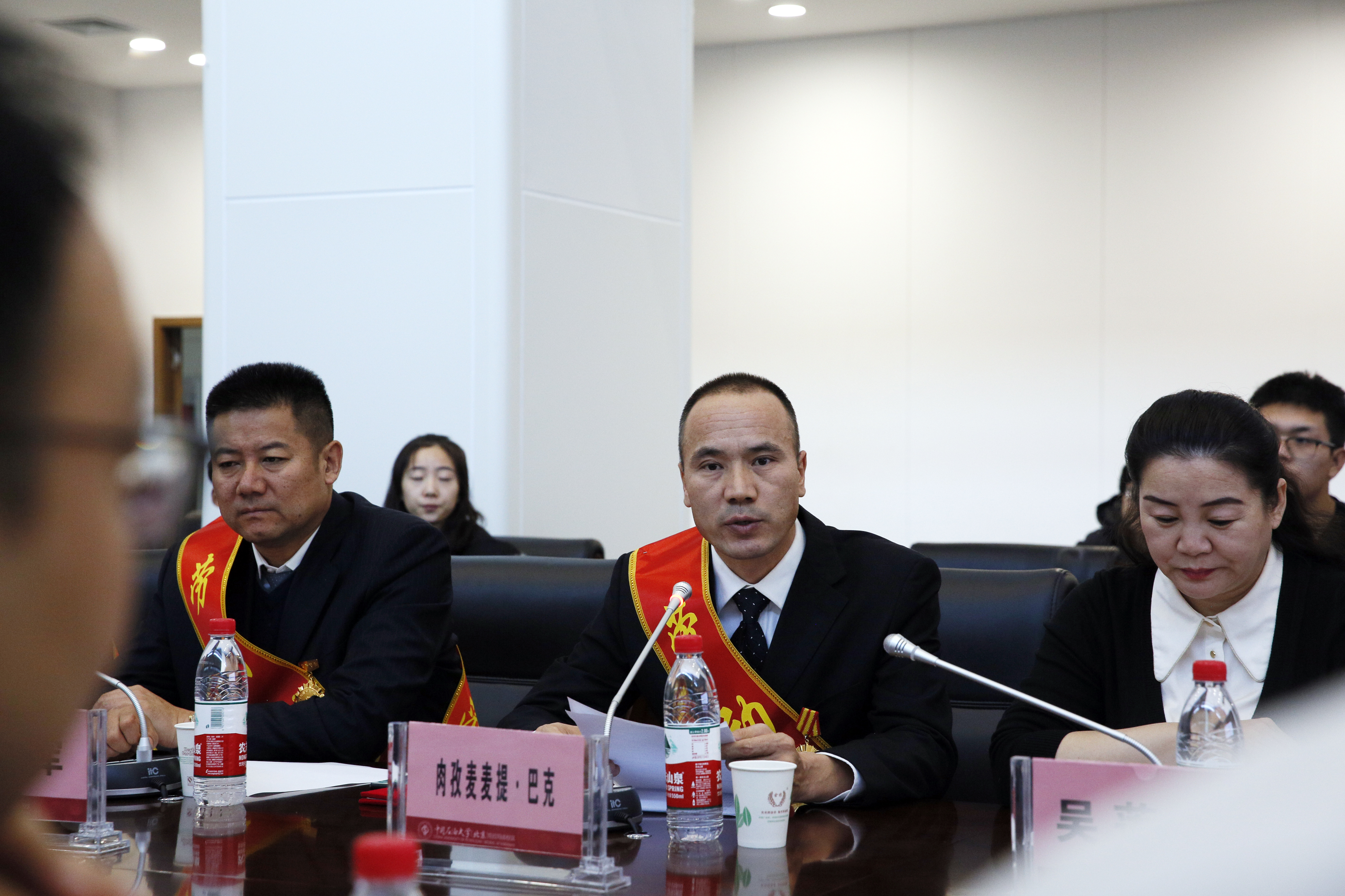 劳模代表肉孜麦麦提·巴克在发言中表示,当代的大学生是幸运的,是国家和民族未来的希望。我们每个人的人生选择不同,职业选择也会有差异,但只有将个人梦想融入到伟大的中国梦中,才能使自己的人生更有价值,希望校区的同学们能够珍惜这个时代,勇担时代使命,为祖国的繁荣昌盛做出应有的贡献。