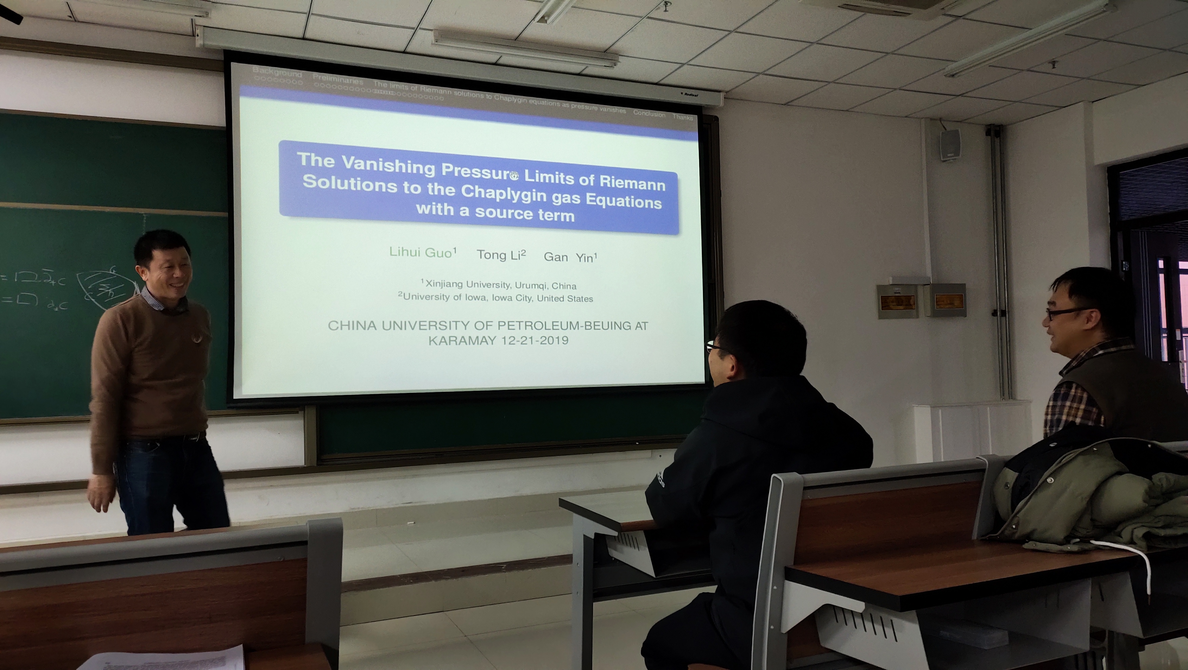 12月21日下午,新疆大学数学与系统科学学院副院长郭俐辉教授、由守科博士应邀作客第三期崇文讲堂,在C5崇文楼向数学系全体教师做专题讲座,袁海荣老师主持讲座。