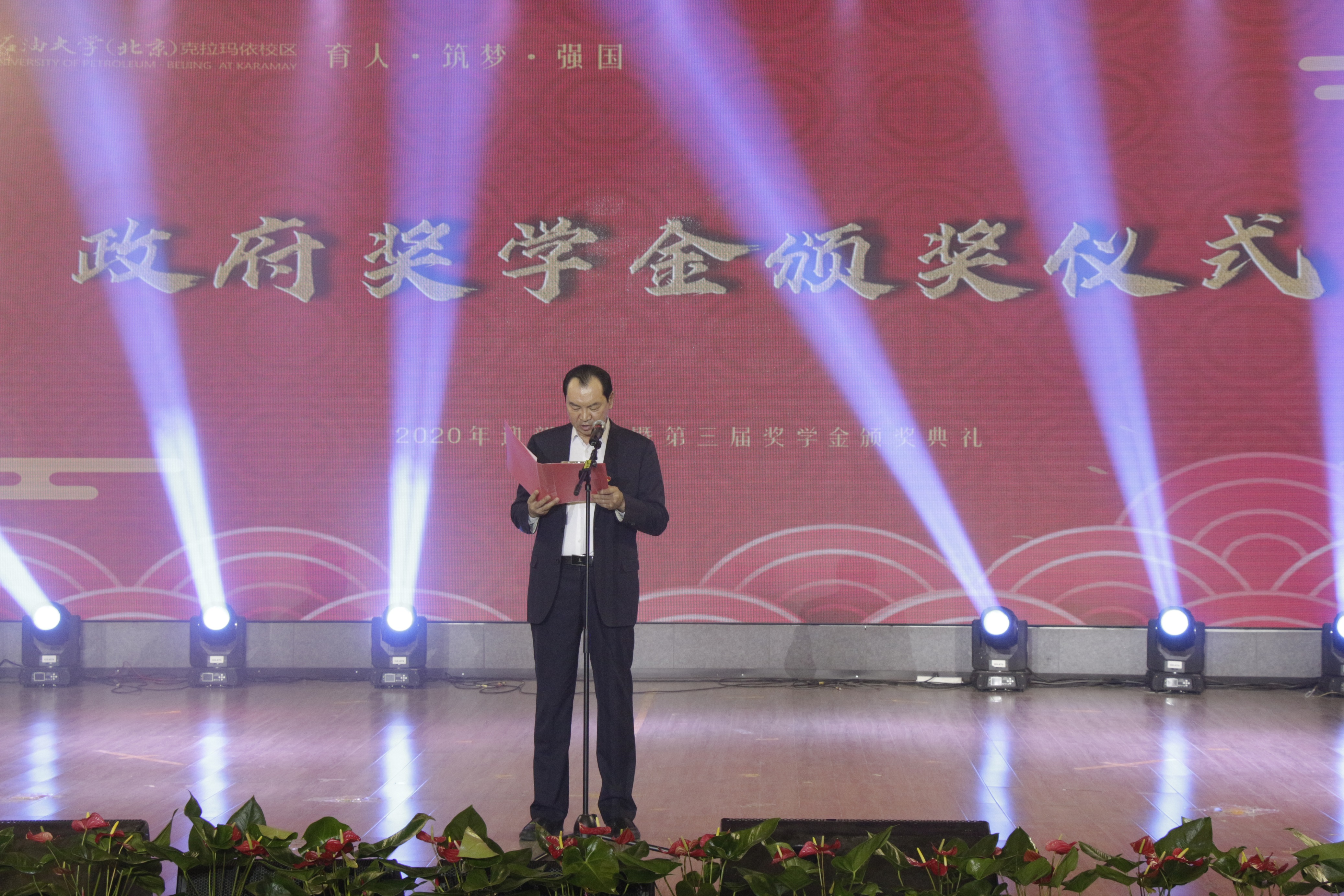 12月27日下午,中国石油大学(北京)克拉玛依校区在J2国际交流中心报告厅举办2020年迎新晚会暨奖学金颁奖典礼。克拉玛依市副市长阿合买提•巴拉提和在校区设立奖(助)学金的企业代表出席了颁奖典礼。