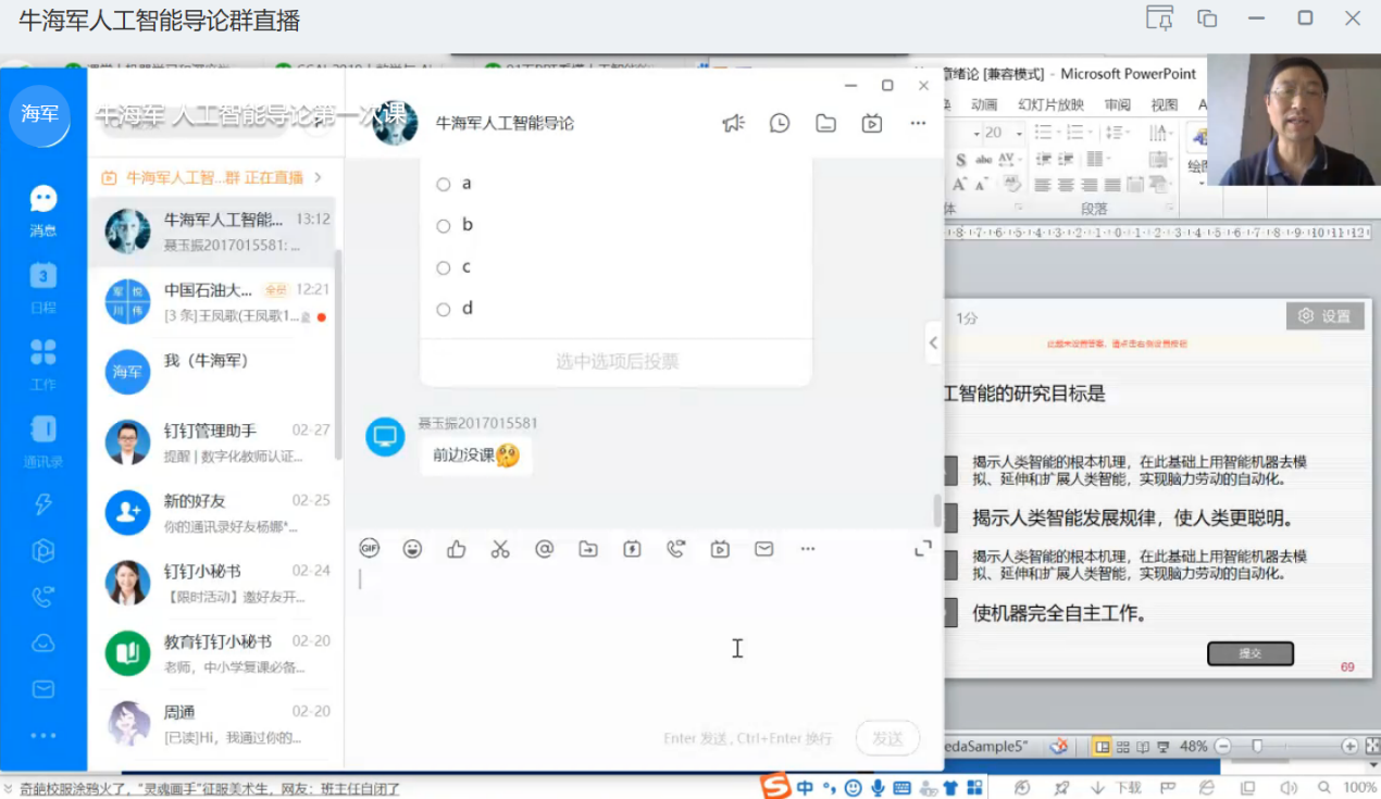 计算机系对口援建教师牛海军:在线上讲授《人工智能导论》课程时,要不断吸取他人线上教学经验,将课件划分为若干小段,并在中间添加问题环节,直播教学效果良好。”