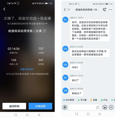 计算机系《数据库系统原理》史海涛老师重点分享了课后线上答疑的经验:每节直播课后会留出二十分钟现场答疑时间,对本堂课学生存在的问题进行统一解答,学生普遍反应课后现场答疑有利于深刻理解知识点。
