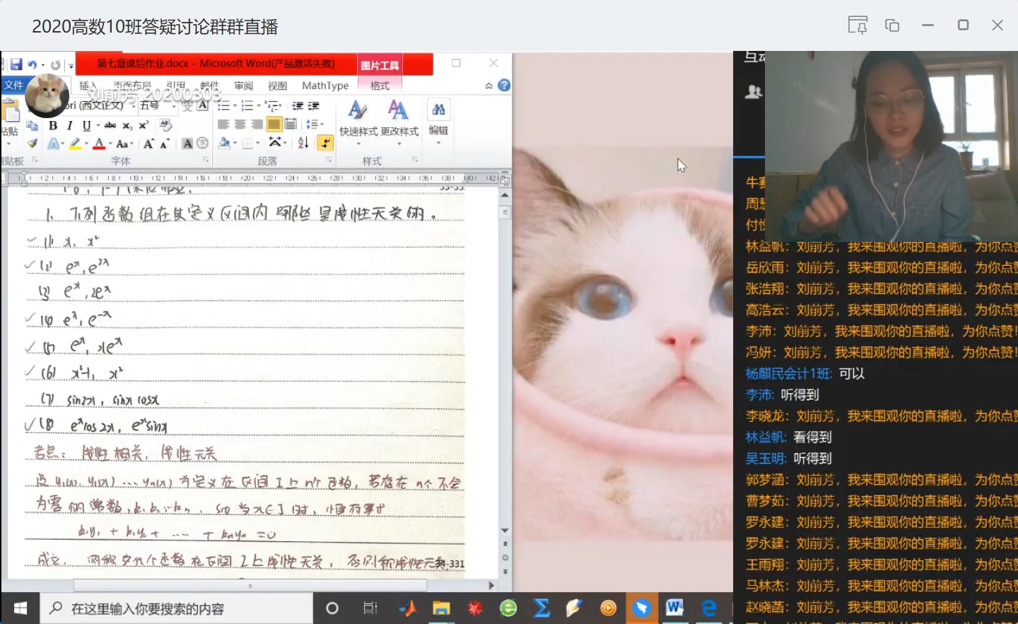 及时总结经验,确保教学质量。开学前,数学系制定了主讲教师全程观摩听课制度,编写了各个教学环节的操作指南。观摩的老师们都会结合每堂直播课讲授方式和效果及时交流,在线研讨总结本次课堂经验,为下次授课做充分准备。课后,老师们又纷纷化身成网络主播,通过哔哩哔哩、腾讯课堂、钉钉等网络直播平台为同学们答疑解惑、在线辅导,马鹏老师还录制了答疑视频发在微信公众号上供大家反复观看。目前,数学系各门课程的教学进展有序,线上教学秩序良好。