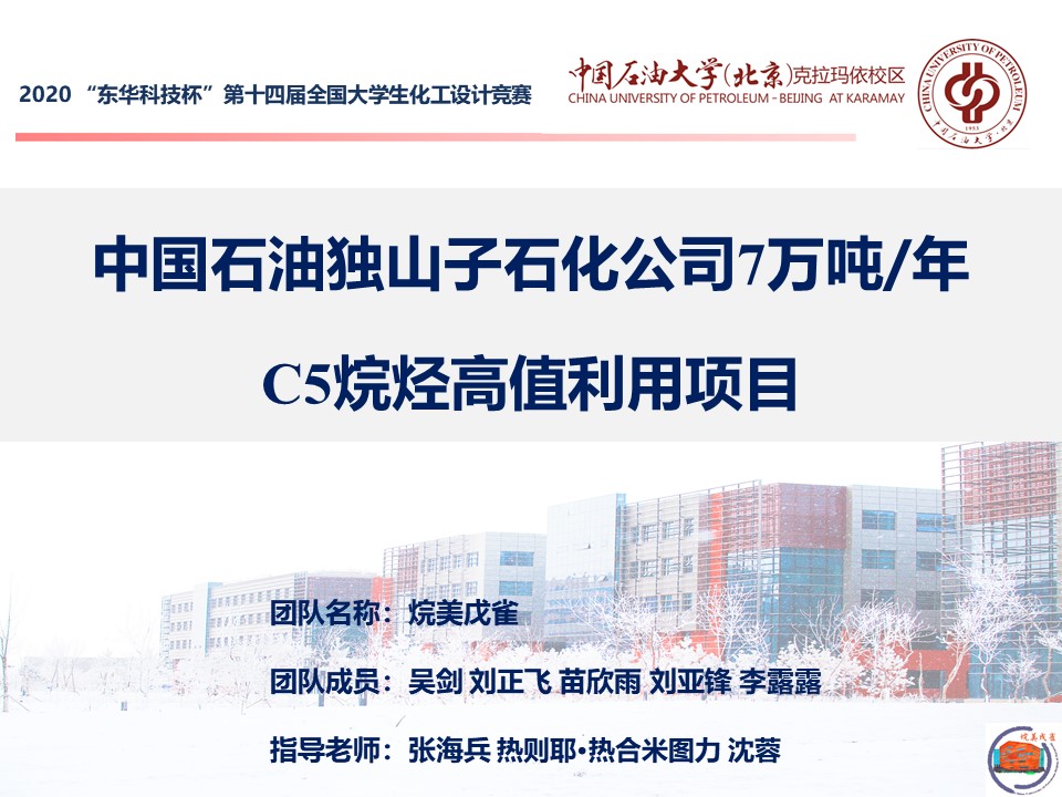 总决赛全程采用线上答辩模式,要求学生按照设计题目采用Aspen Plus、Plant 3D等模拟、仿真、设计、校核软件,设计出一座具有自主知识产权的现代化工厂,具体包括工艺设计、管道设计、自控设计、设备设计选型、厂区布置、经济概算、可行性分析、安全与环境评价等二十余项子项目。在郭绪强、刘艳升、张海兵、杜春安、热则耶·热合米图力、沈蓉等指导教师的带领下,三支代表队从今年初有序开展队伍组建、制定计划、查阅资料、方案设计、培训备赛等工作,经过历时半年的精心准备,克服疫情带来的影响,最终取得了优异的成绩。