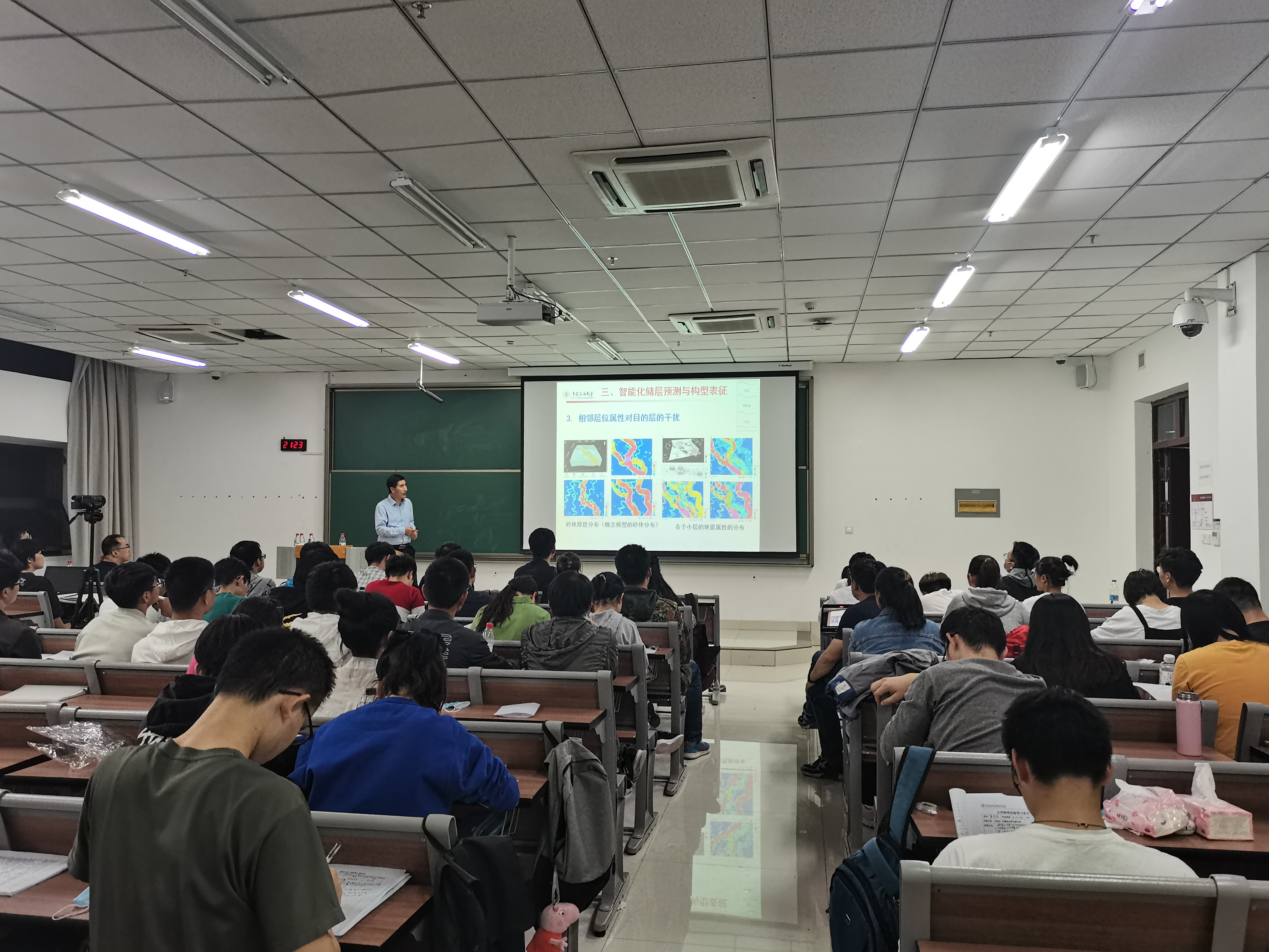10月21日,校区石油学院举办第二十七期石油讲堂。中国石油大学(北京)地球科学学院副院长岳大力教授作了题为《智能化井震结合储层预测与构型表征》的专题报告,石油学院150余名学生现场聆听了本次讲座。讲座由石油学院地质系主任殷文教授主持。