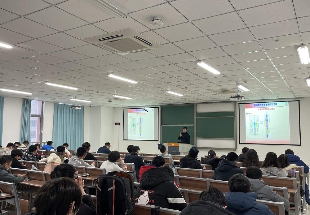 王江云围绕反应器内多相流动与分离、多相流动与冲蚀和多相流动与燃烧、传热三个部分,全面介绍了CFD技术在工程实例当中的应用。他结合模拟计算结果,展示了CFD技术在解决工程问题中的优势和特点。讲座最后,王江云鼓励同学们积极参与科研实践类活动,在实践中培养发现问题及解决问题的能力,真正做到学以致用。