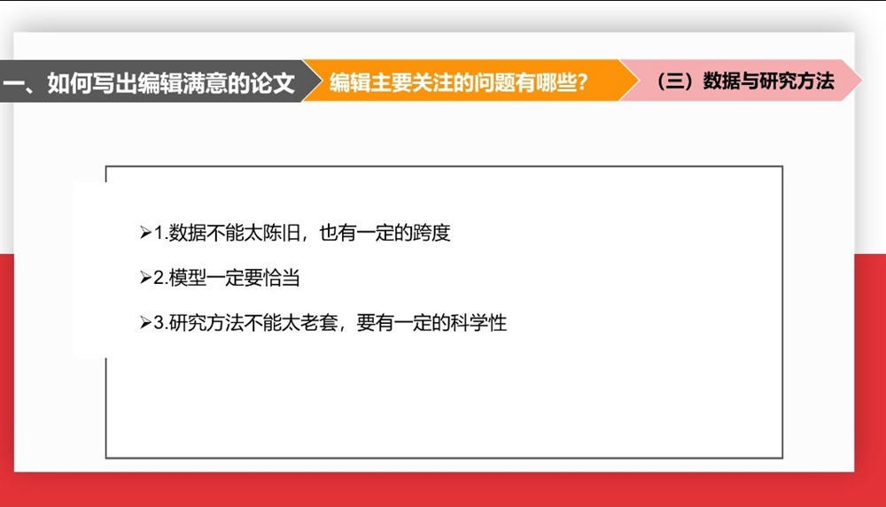 胡浩志从“如何写出编辑满意的论文”“如何正确投稿”和“如何配合编辑部的修改”等三个方面进行阐述,强调了选择正确的投稿方式和合适的期刊对于提高论文发表成功率的重要性。他建议青年教师在投稿时对自己的论文要有准确的定位和预期,选择与论文风格匹配的期刊和栏目,在进行论文修改工作时要与编辑部积极沟通,全面客观回复审稿意见。