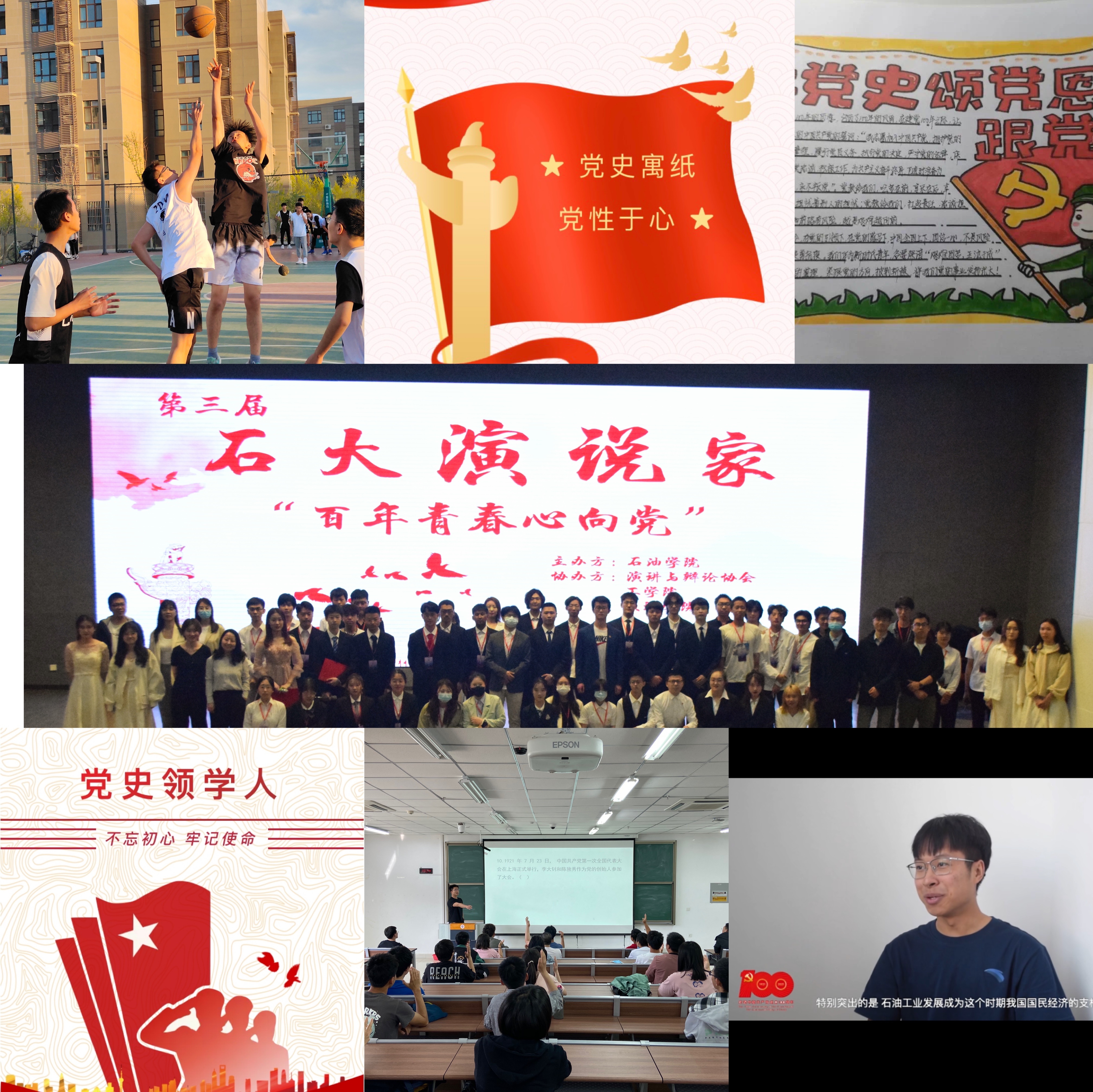 在第102个五四青年节来临之际,石油学院以五四精神为主线,开展了“忆党史、铭党恩 、强体魄、守初心”第二届3V3篮球联赛、“石大演说家—百年青春心向党”演讲比赛、“百年华诞,党在我心”党史知识竞赛、“青年话党情”征文比赛、“党史寓纸 党性于心”手抄报大赛等活动。学院还开展了“我是党史领学人”微党课活动,鼓励学生讲述百年辉煌党史,讴歌爱党爱国情怀,争做党史“传承人”。