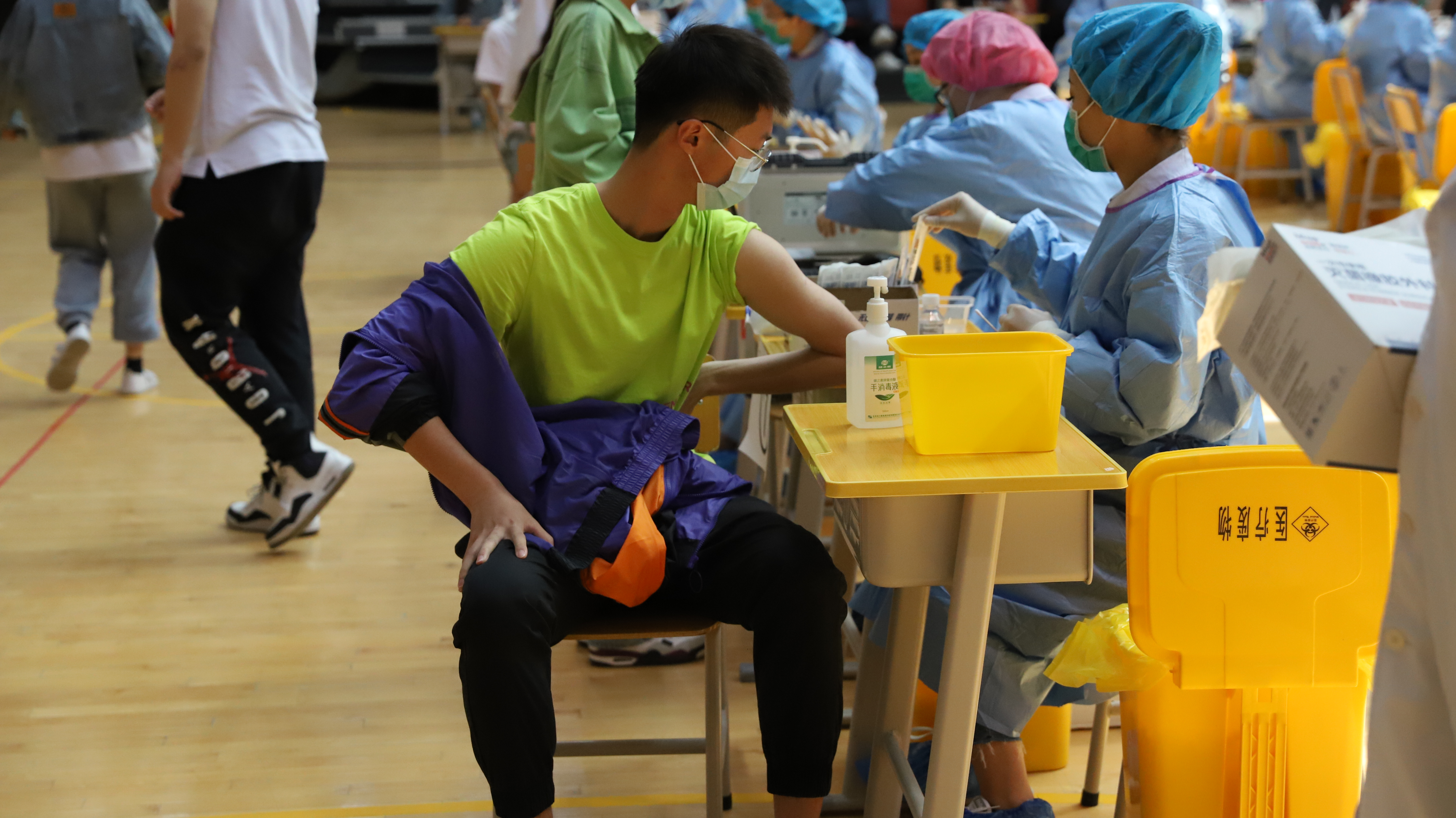 与第一针接种时相同,临时疫苗接种点设有等候区、咨询区、登记区、接种区、取号区和留观区等功能区。前往接种疫苗的师生们按照要求有序排队,分批次入场。现场医护人员、校区教师和学生志愿者各司其职、通力合作,保证接种全过程井然有序、高效进行。