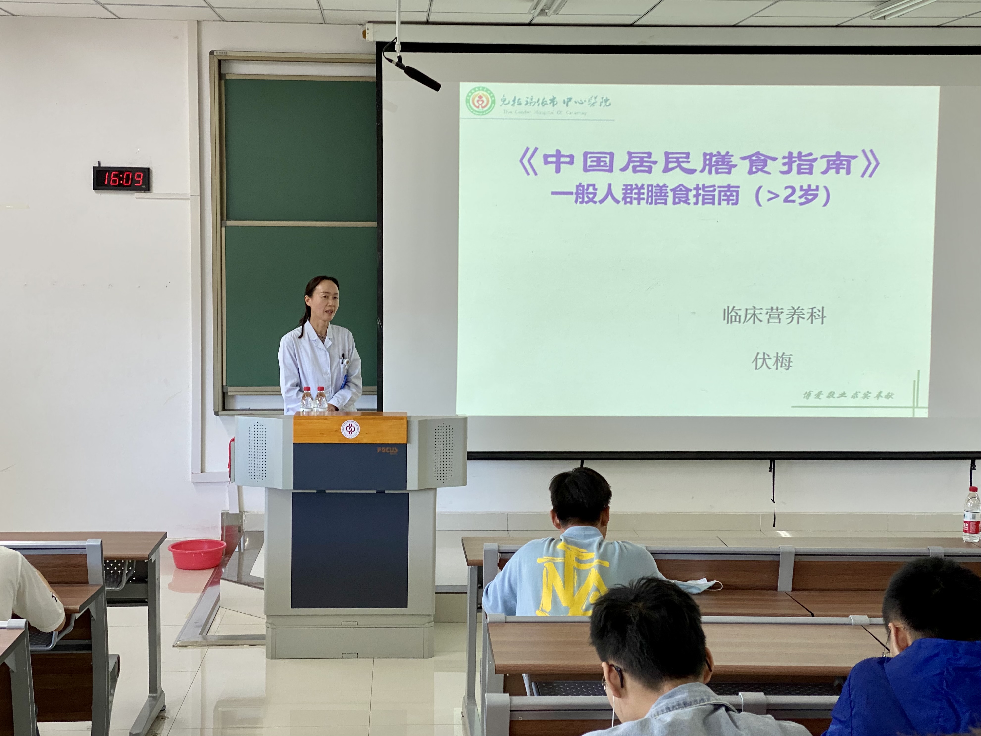 伏梅以中国居民日常膳食中存在的问题为出发点,分析了国民在饮食健康上的一些误区,提出了健康膳食“6个核心推荐”。她还分别就食物类型、吃动平衡、蔬果有序、蛋白适量、控糖限酒、兴新食尚等方详细讲解了健康饮食方式,介绍了BMI体重判定的方法,对于不同类型的非健康体重给出了改善意见,同与会师生分享了居民蛋白质摄入量的计算公式以及如何足量摄取人体所需蛋白质含量。在互动环节中,在场的师生就如何维持均衡膳食、规律作息等方面与伏梅医生进行深入交流。