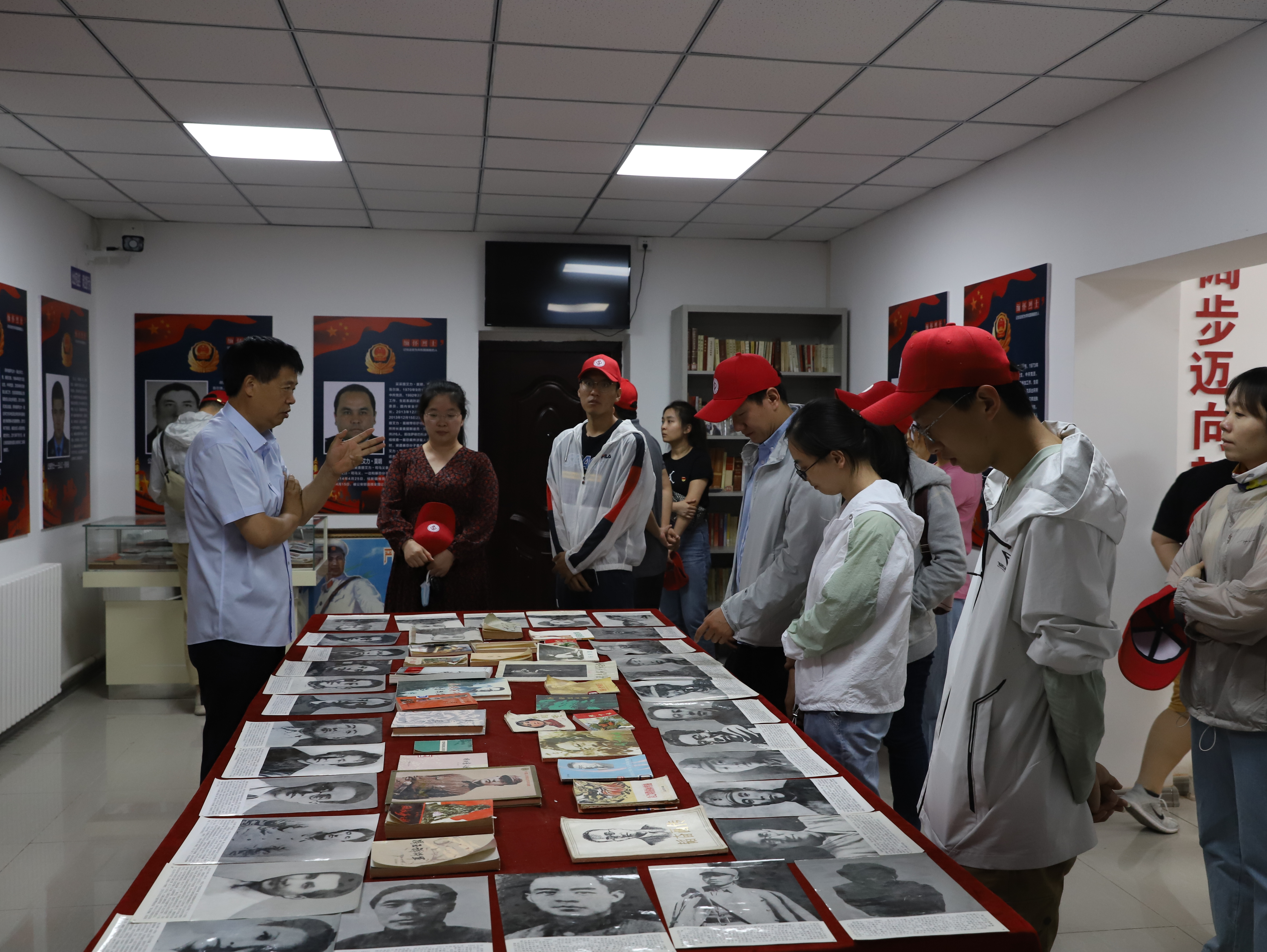 克拉玛依红色记忆展览馆分为主馆和副馆两个部分。主馆陈列了毛泽东同志生平文字资料、个人影以及像章雕像等。副馆展示了中国革命历史、新疆警察烈士事迹、展览馆建设过程等。全体党员怀着崇敬的心情,瞻仰了毛泽东同志的早期珍贵影像,重温了中国共产党带领全国人民披荆斩棘、奋勇向前的革命历程,参观过程中,全体党员神情肃穆,深切缅怀为建立新中国和维护新疆安全稳定而英勇牺牲的烈士。展览馆的创办人陈建为全体党员依次讲解了馆内一件件珍贵藏品背后的历史故事。大家仔细聆听讲解,共同感受先烈们百折不挠、舍生忘死的革命精神。