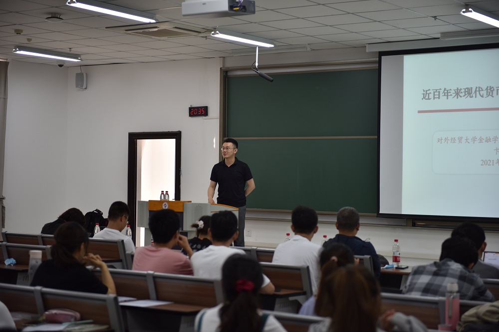 6月25日,工商管理学院在C5崇文楼举办第十六期崇文讲堂。对外经济贸易大学副教授卞洋受邀作了题为《近一百年来现代货币金融学说发展历程》的专题报告,本次活动由副院长高洁主持,学院百余名师生到场聆听。