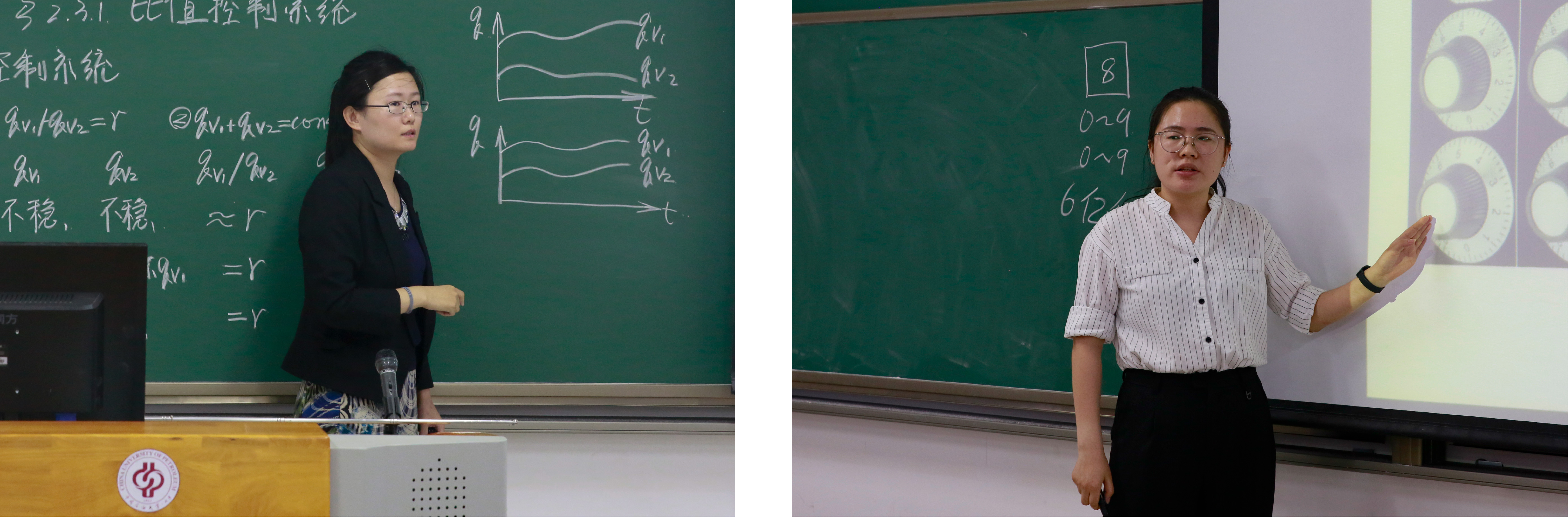 比赛现场,每位选手在20分钟内,用普通话讲授1课时的课程内容。各参赛选手通过精彩的课堂教学演示和黑板板书,综合运用多媒体课件等教学手段,注重启发性的讲授和简明有效的互动环节,充分展现出参赛选手认真严谨的教学作风、科学合理的教学设计及以学生为中心的教学理念。