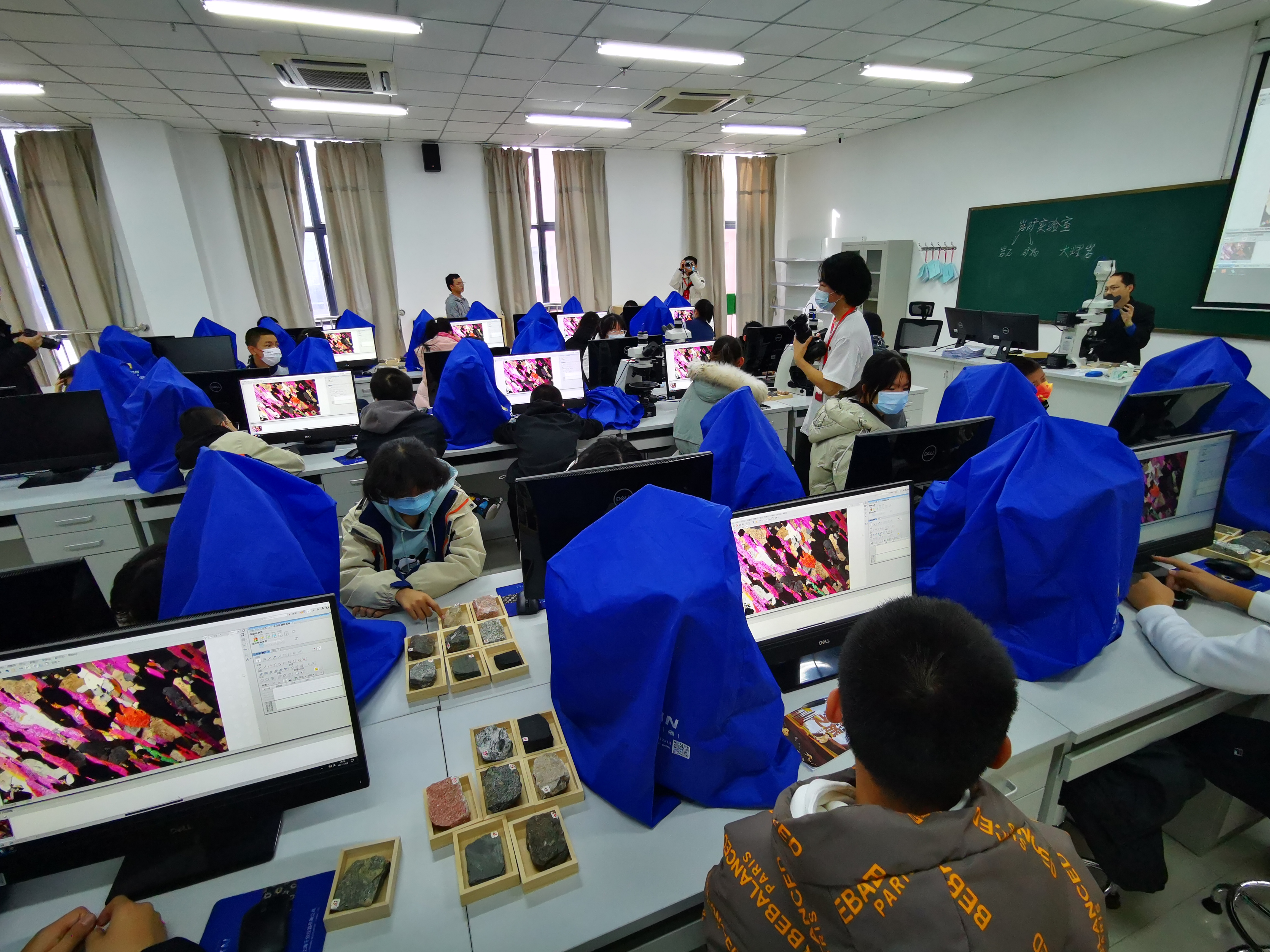 最后,同学们参观了石油学院古生物实验室和岩矿实验室,通过观察化石与岩石手标本了解了亿年前古生物的演化过程及石油的形成机理,通过显微镜观察了岩石的矿物成分和微观结构特征,学生们感叹石油人能从如此致密的岩石中寻找和开采石油十分不易,感受到了石油的魅力和石油人的伟大。
