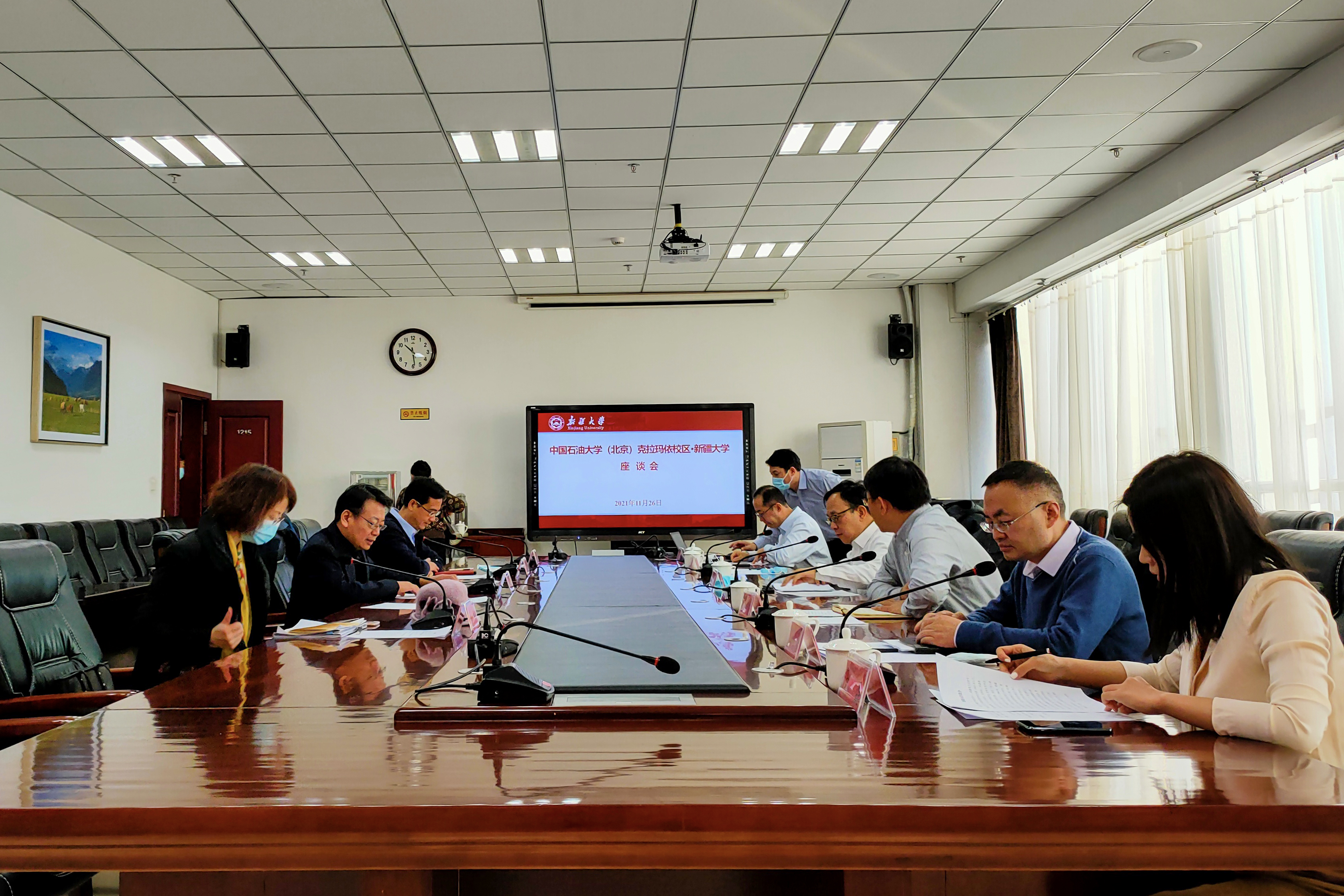 座谈会上,刘坚介绍了校区目前发展建设情况及十四五规划。他代表校区向长期扎根新疆、建设新疆,为新疆经济社会发展培养大量人才的自治区高校表示崇高的敬意。希望双方能够共同开展高等教育教学活动研讨,聚焦新疆未来发展的重大需求搭建合作平台,实现互补借力、共同发展,培养更多可堪大用、能担重任的西部建设者。刘坚一行诚挚邀请自治区高校到校区实地调研,增进交流,实现合作共赢。自治区高校领导表示,中国石油大学(北京)在新疆建设克拉玛依校区,是新时代教育援疆的重大举措,是贯彻新时代党的治疆方略的具体实践,对新疆高等教育事业的发展具有深远意义。作为一所特色鲜明的高水平大学,中国石油大学(北京)在工科建设方面实力雄厚、经验丰富,对自治区高校工科发展具有重要意义。双方就学科建设、教师及学生交流、高层次科研平台搭建等合作意向进行了交流。
