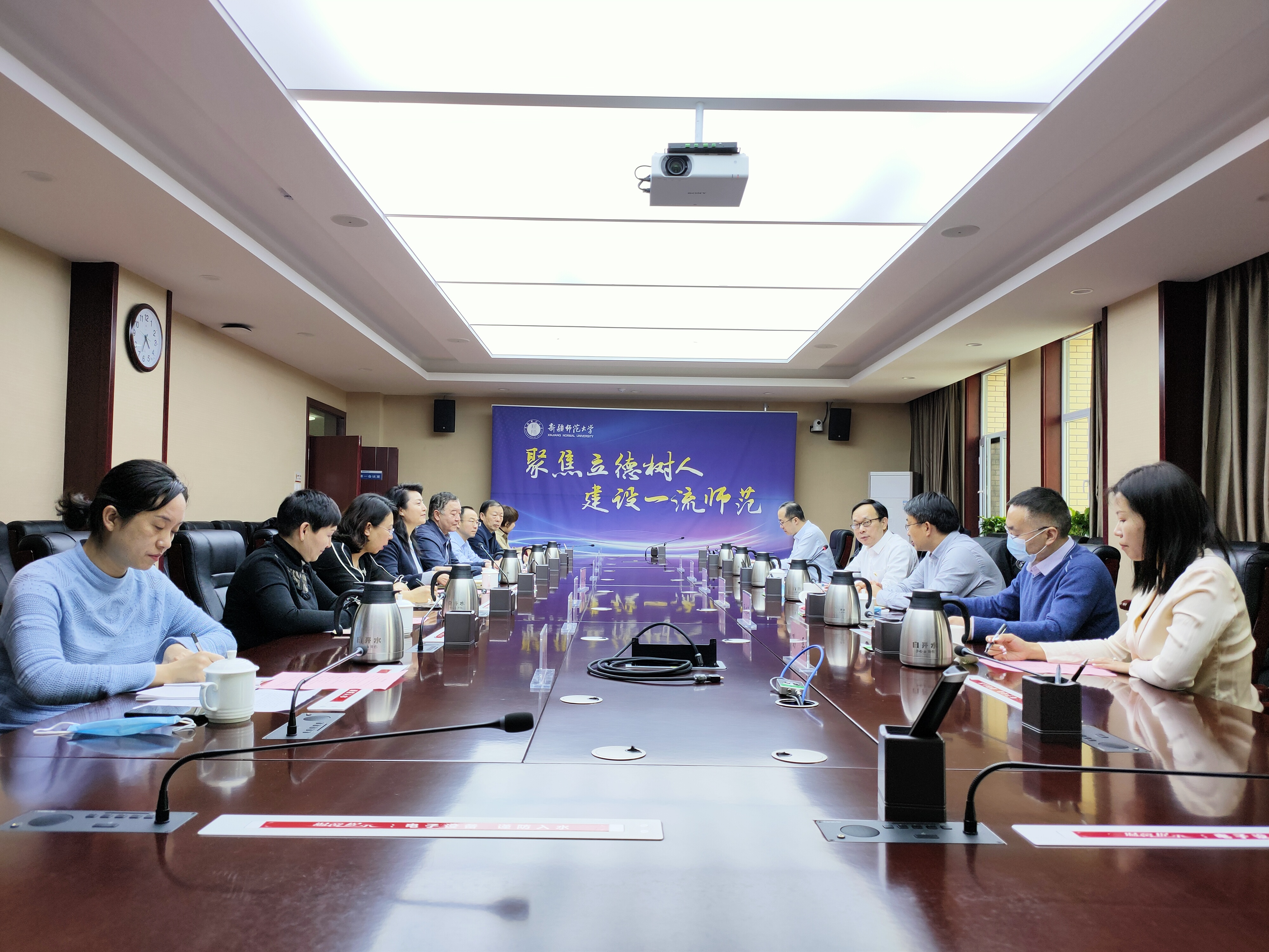 调研期间,刘坚一行参观了新疆大学校史馆、新疆师范大学中国语言文学学院国学讲堂、外国语学院。