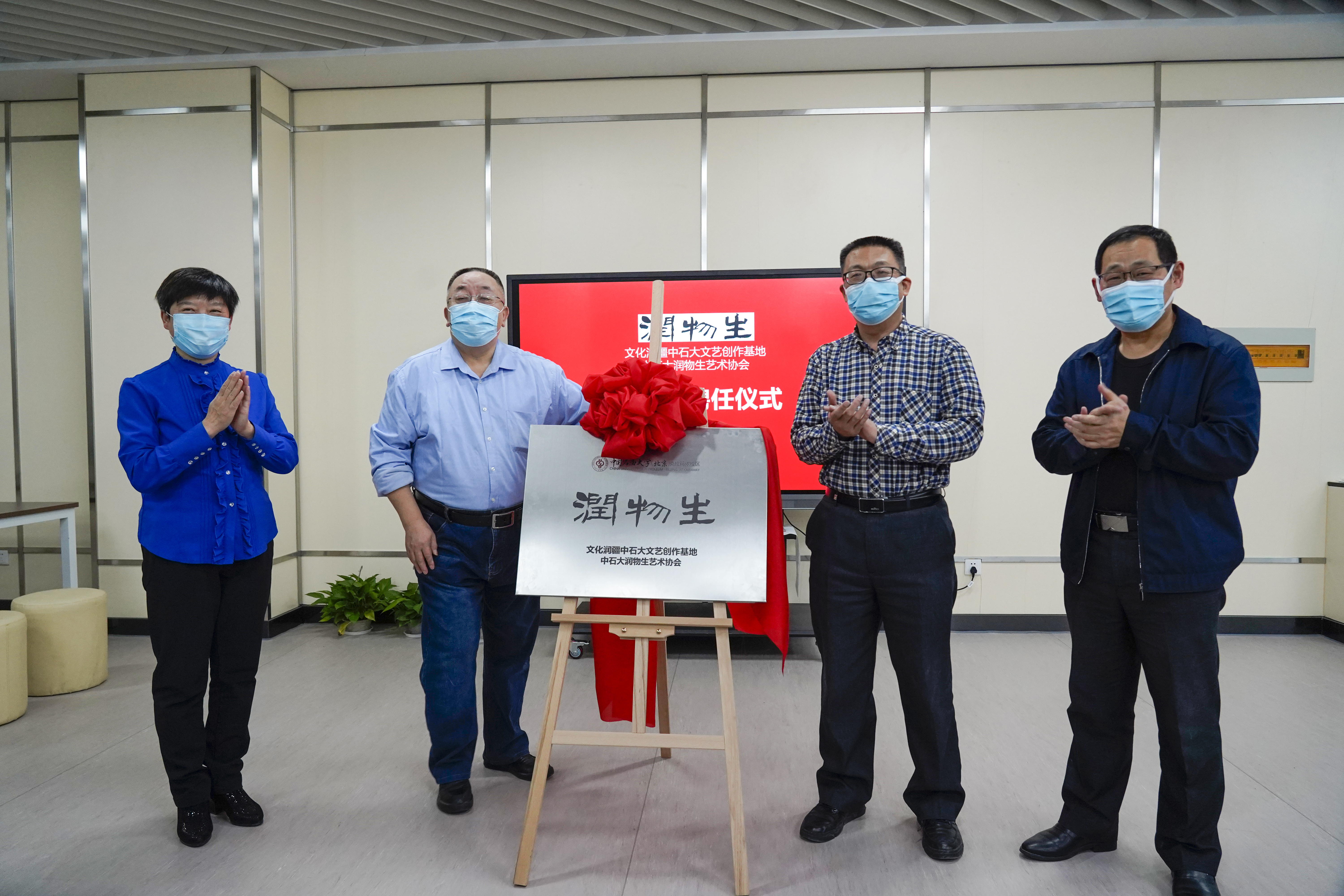 李军、王培杰、陈晖、景民昌共同为文化润疆文艺创作基地、润物生艺术协会揭牌。