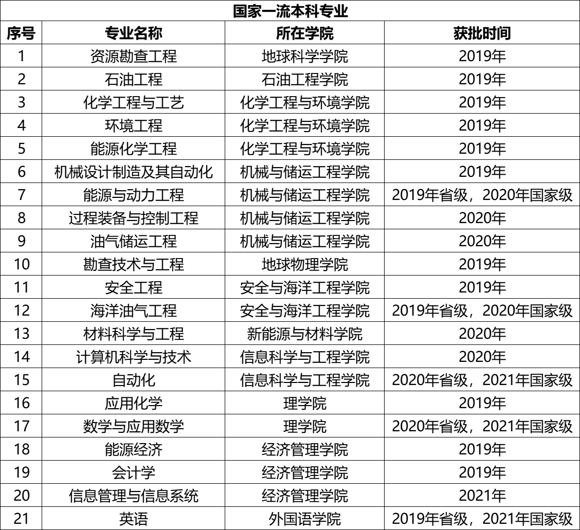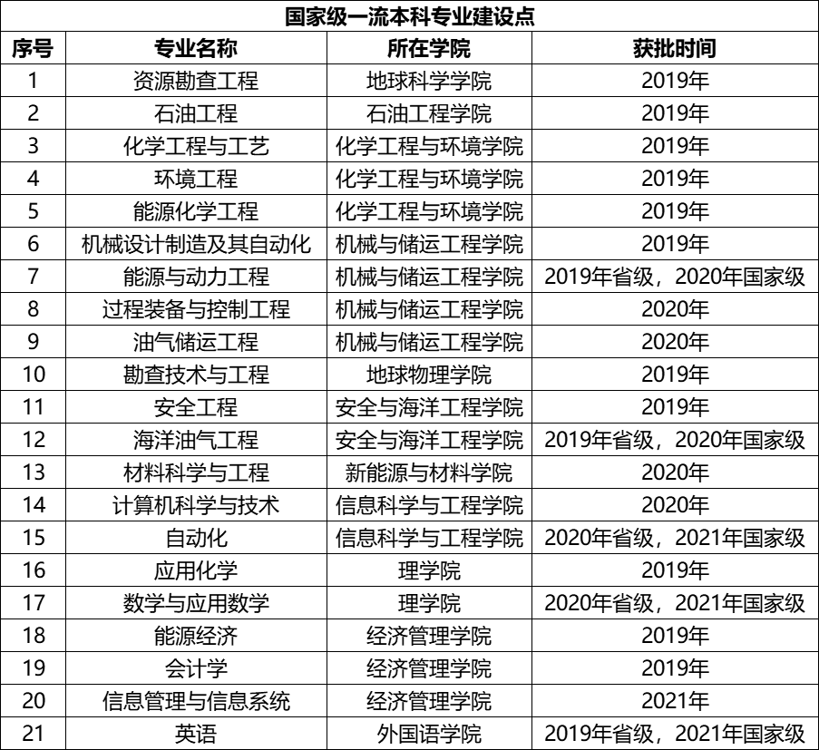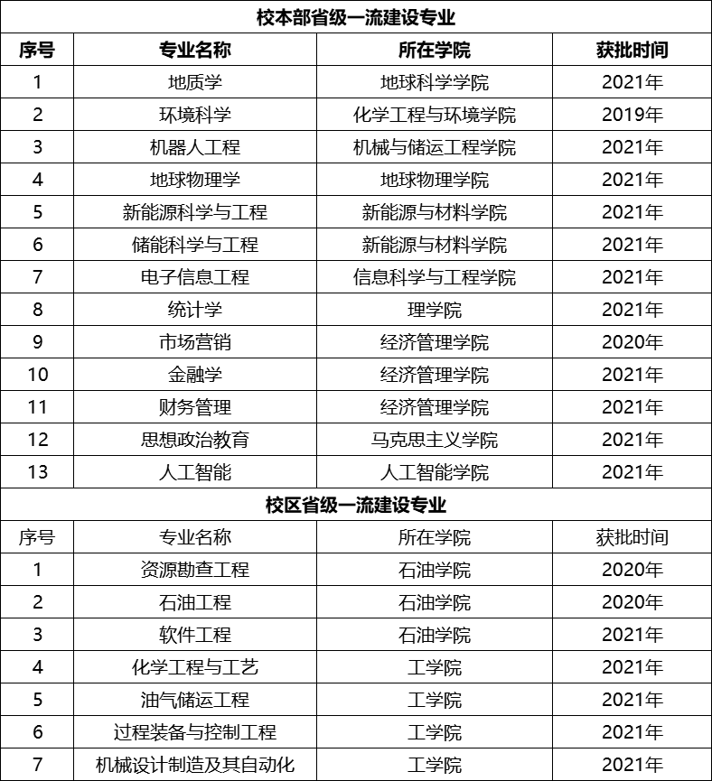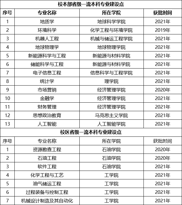 近日,教育部公布2021年度“双万计划”一流本科专业建设点名单,中国石油大学(北京)校本部英语、数学与应用数学、自动化、信息管理与信息系统4个专业入选国家级一流本科专业建设点,校本部11个专业、克拉玛依校区5个专业入选省级一流本科专业建设点。截至目前,校本部共获批国家级一流专业建设点21个,省级一流专业建设点13个,约占全部招生专业的97%;本科第七年招生的克拉玛依校区省级一流专业建设点7个,已占全部招生专业的30%。