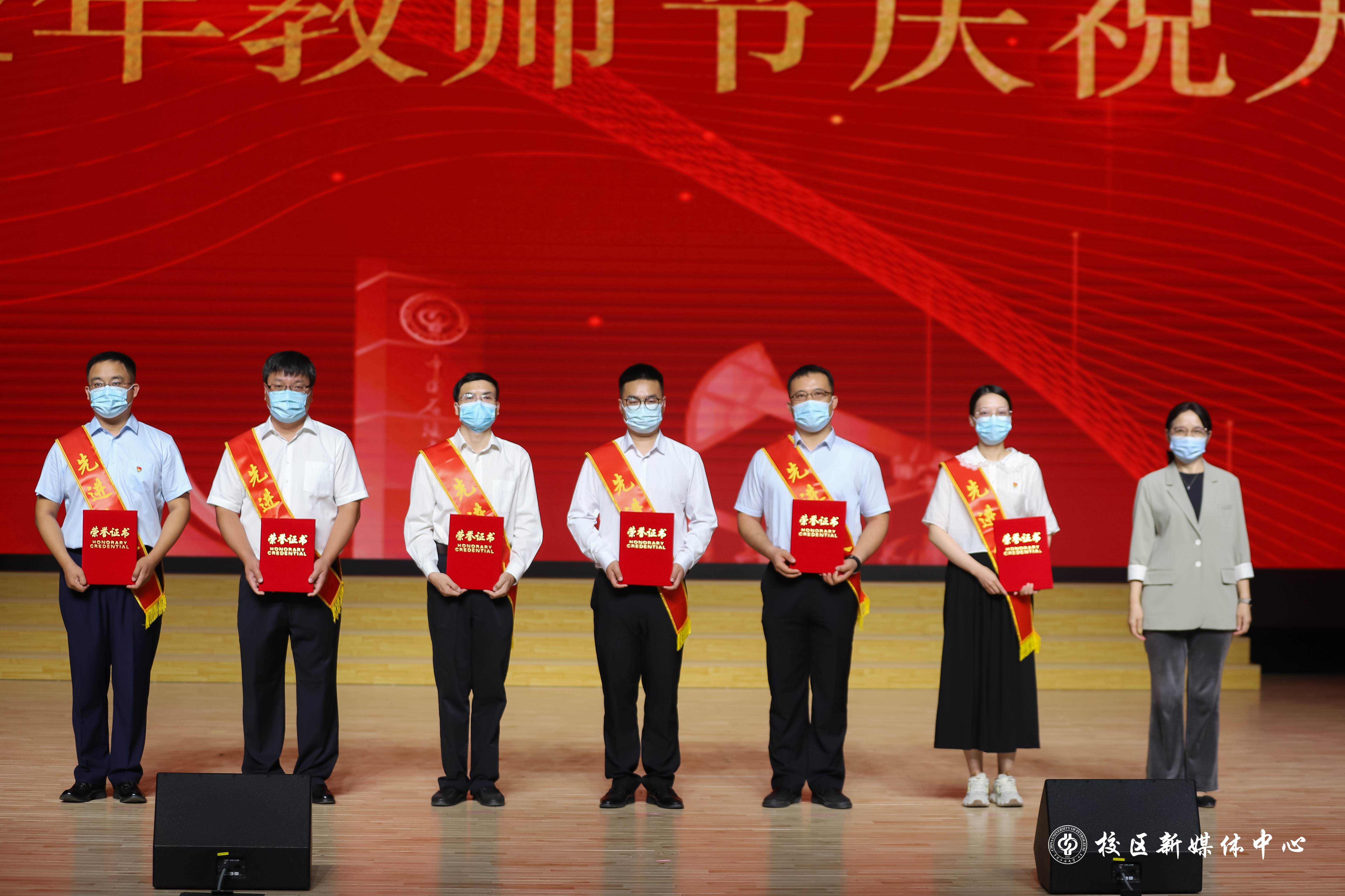 会上,校区同步观看学校2022年教师节庆祝大会,同时对2020年以来入选高层次人才项目的教师、荣获科学研究类和教育教学类奖项的教师、获得学校及校区2020-2022年度先进集体的单位及先进个人的教职工进行了表彰。校区领导为受到表彰的教师代表颁发证书。