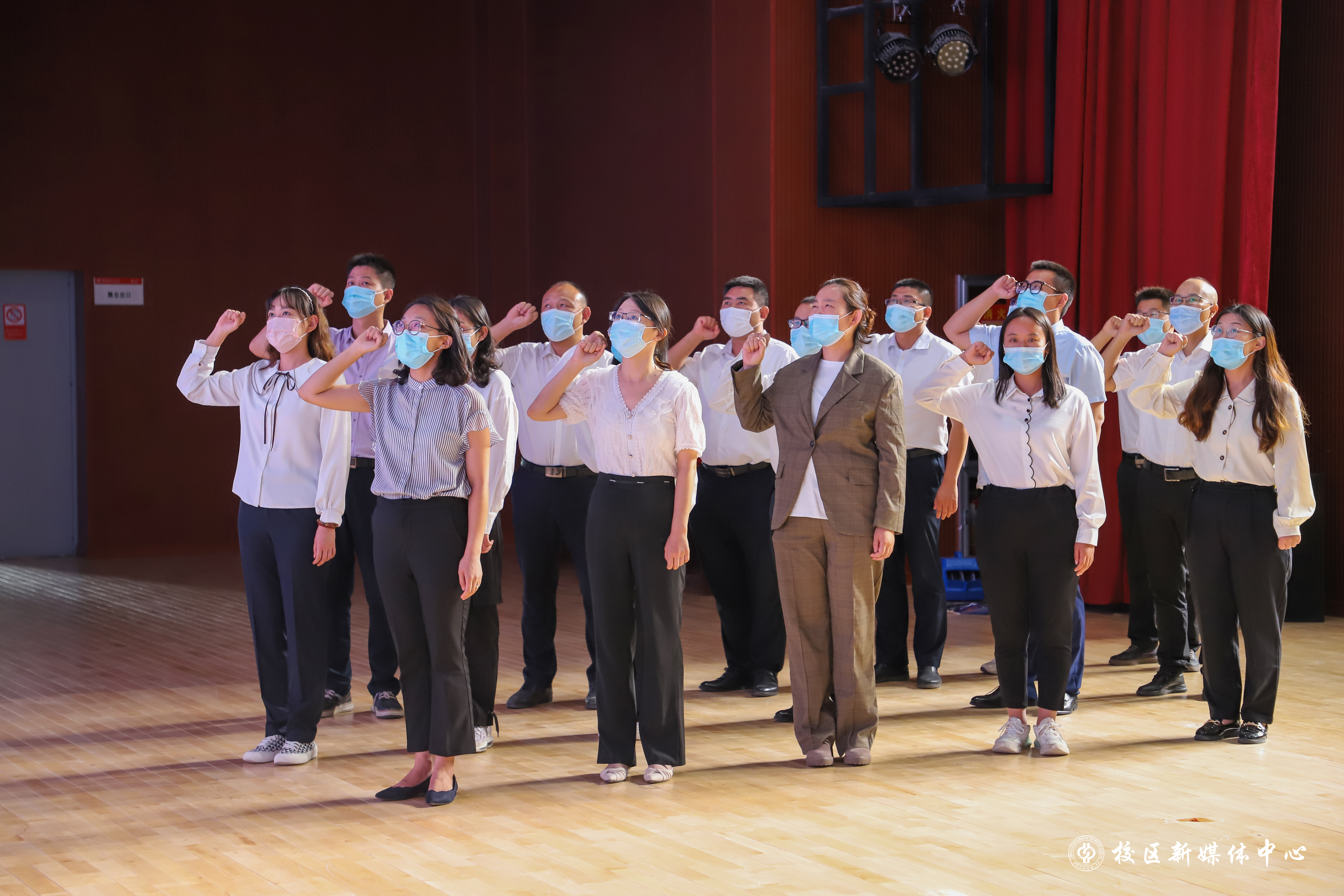 在入职宣誓环节,校区18名2022年新入职教职工进行了庄严的入职宣誓,郑重承诺将忠诚于党和人民的教育事业,履行教师神圣职责,为建成西部高等教育和国家高等工程教育示范基地而努力奋斗!